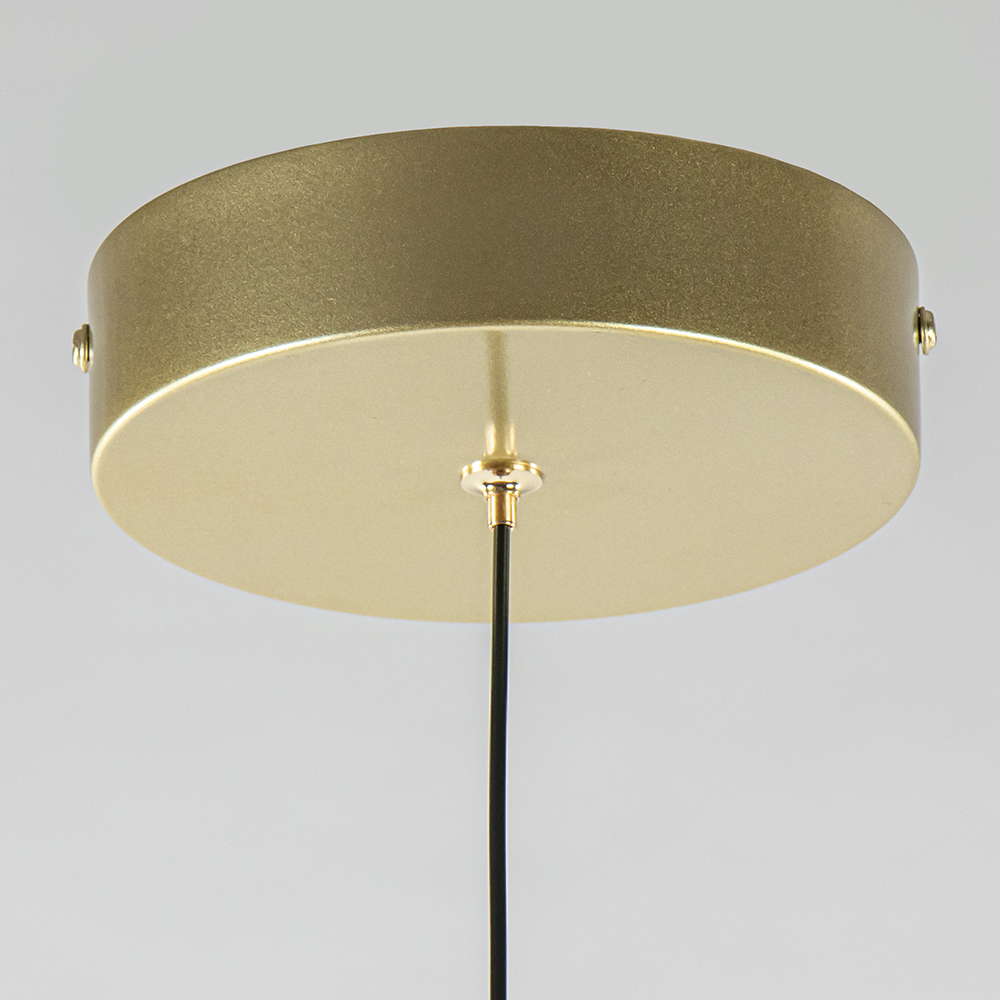 – afm: Ø22×150 cm – bevestiging: Ø14×3,5 cm – kap: Ø22 cm – metaal, goud – helder glas – inclusief LED – 300 lumen – 2700 kelvin – dimbaar (exclusief)