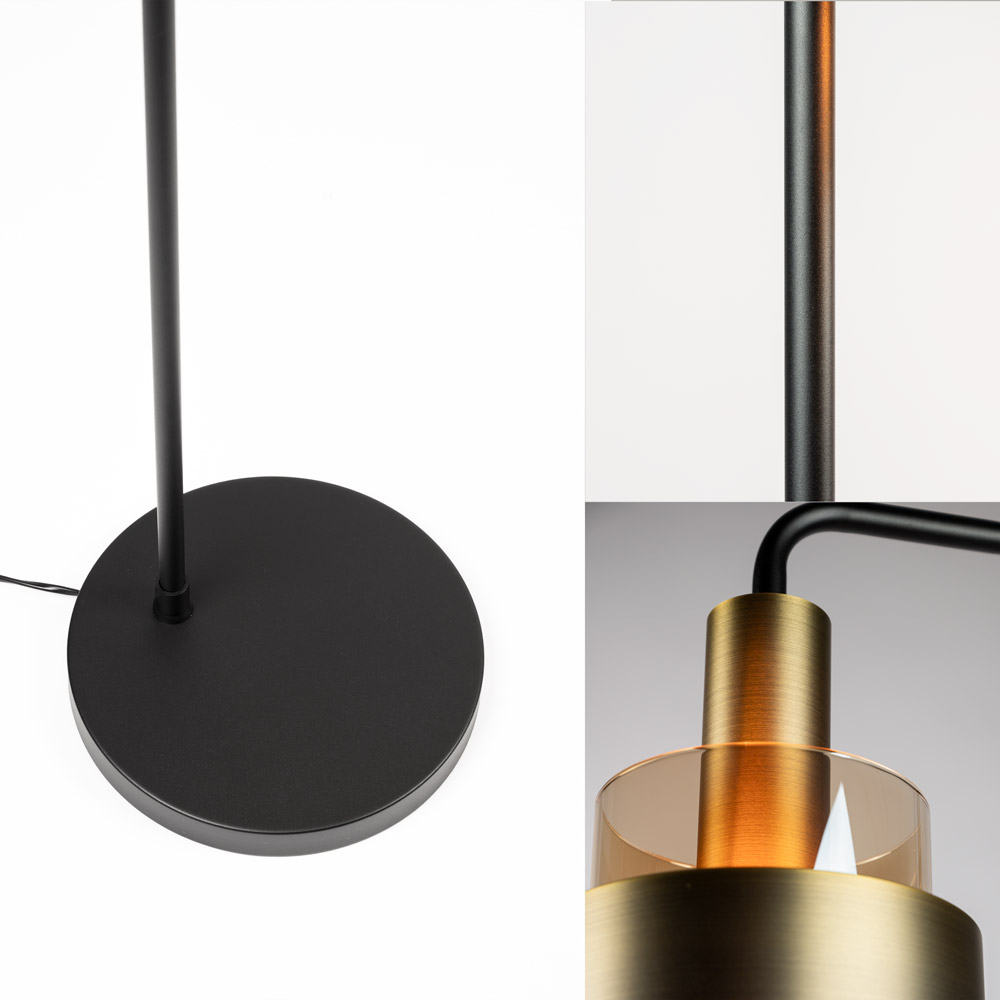 Highlights • Slank, elegant ontwerp met amberkleurig glas • Verkrijgbaar in zwart/brons en beige/brons • Richtbare kap voor het sturen van het licht • Perfect naast een bank, fauteuil of in een leeshoek