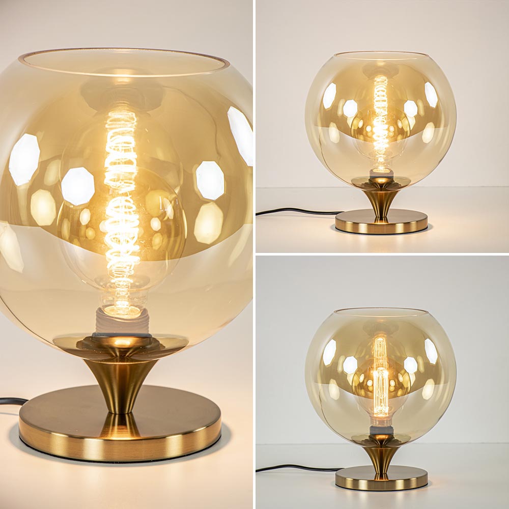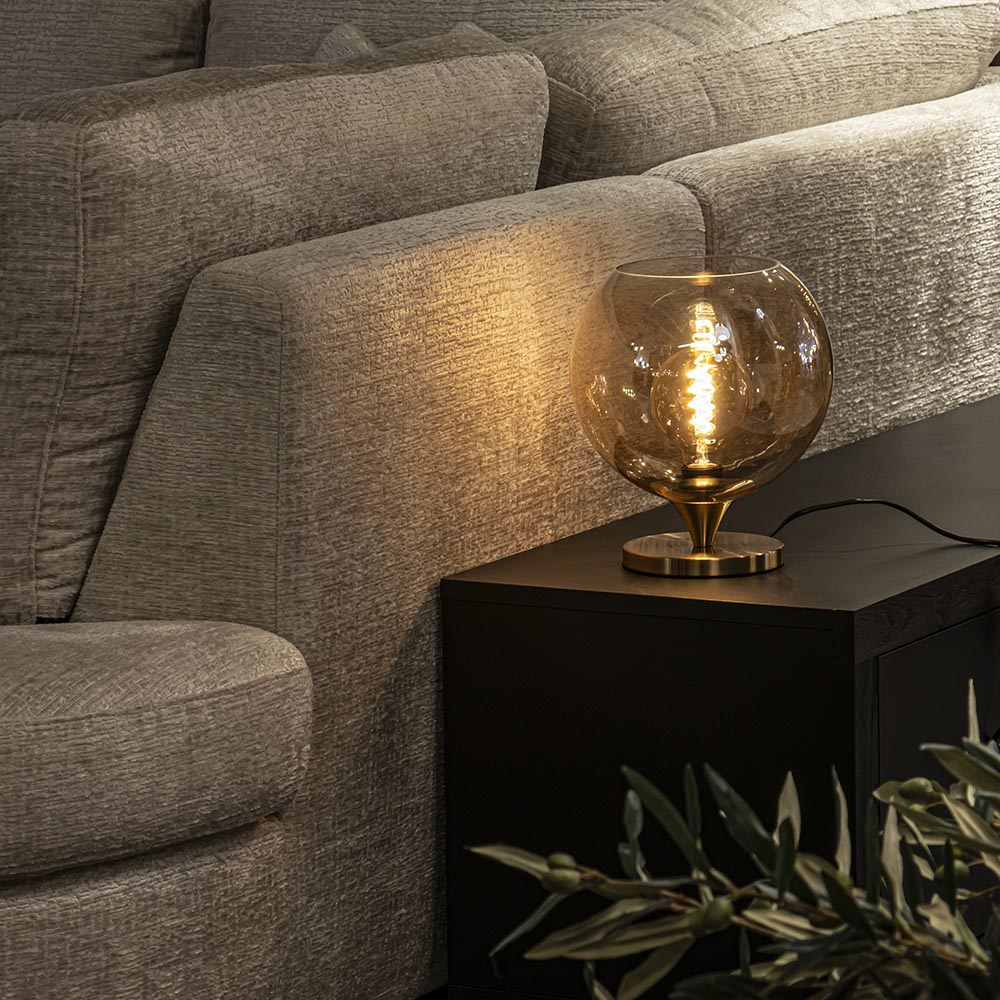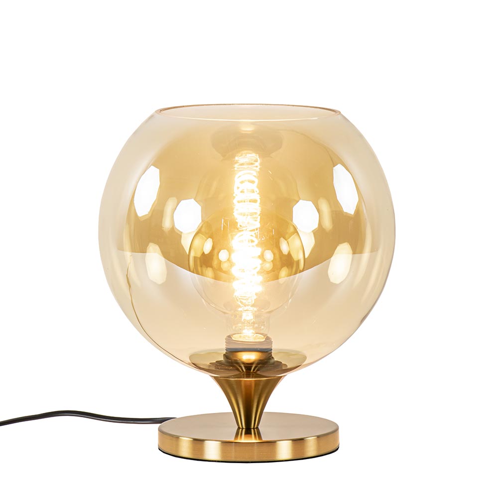 Homepagina / Lampen / Tafellampen / Elegante tafellamp donker goud met amber glazen bol 25 cm