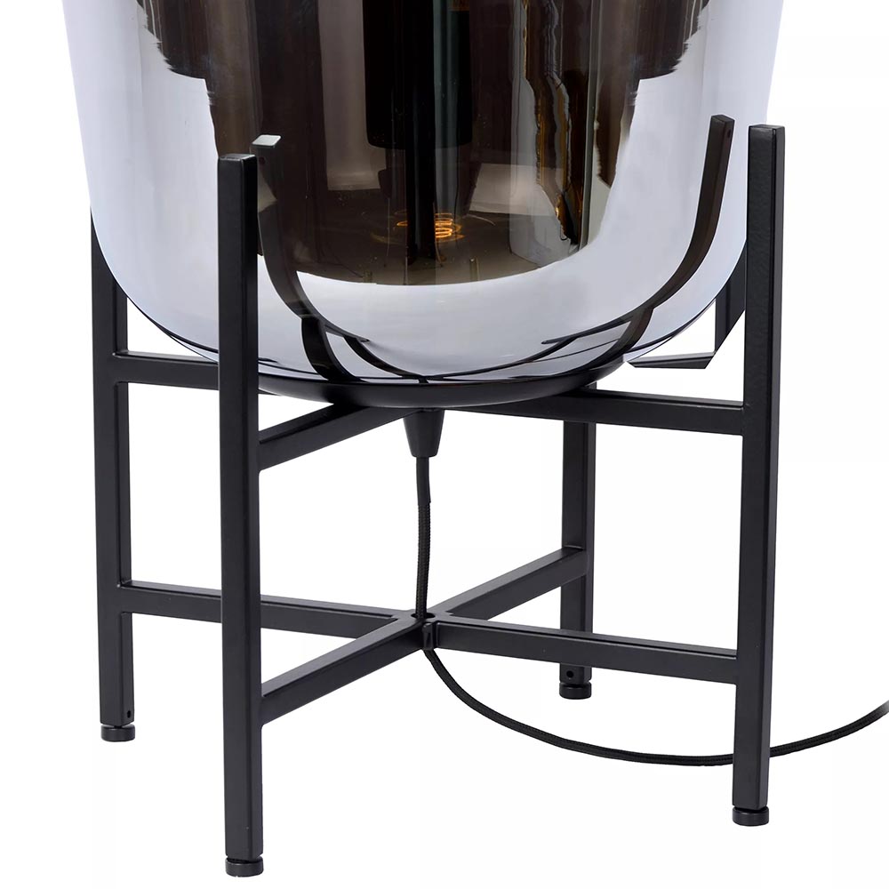 – hoogte: 55 cm – kap: Ø32×39 cm – voet: 31x31x27 cm – smoke glas – metaal, mat zwart – in hoogte verstelbaar – exclusief lichtbron (E27) – dimbaar (exclusief) – zwart snoer: 170 cm