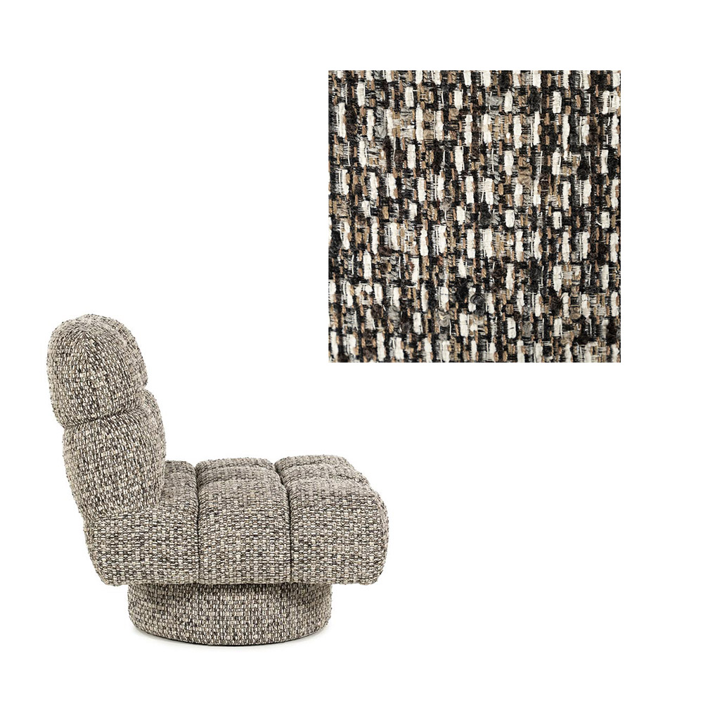 Specificaties: • Merk: Eleonora • Serie: Fenna • Kleur: Taupe / Beige • Afmetingen: H 83 × B 78 × D 83 cm • Materiaal: Stof Vive, metalen draaivoet • Zitting: Comfortabele, vaste zitting met afgeronde rug • Draaibaar: Ja, 360°
