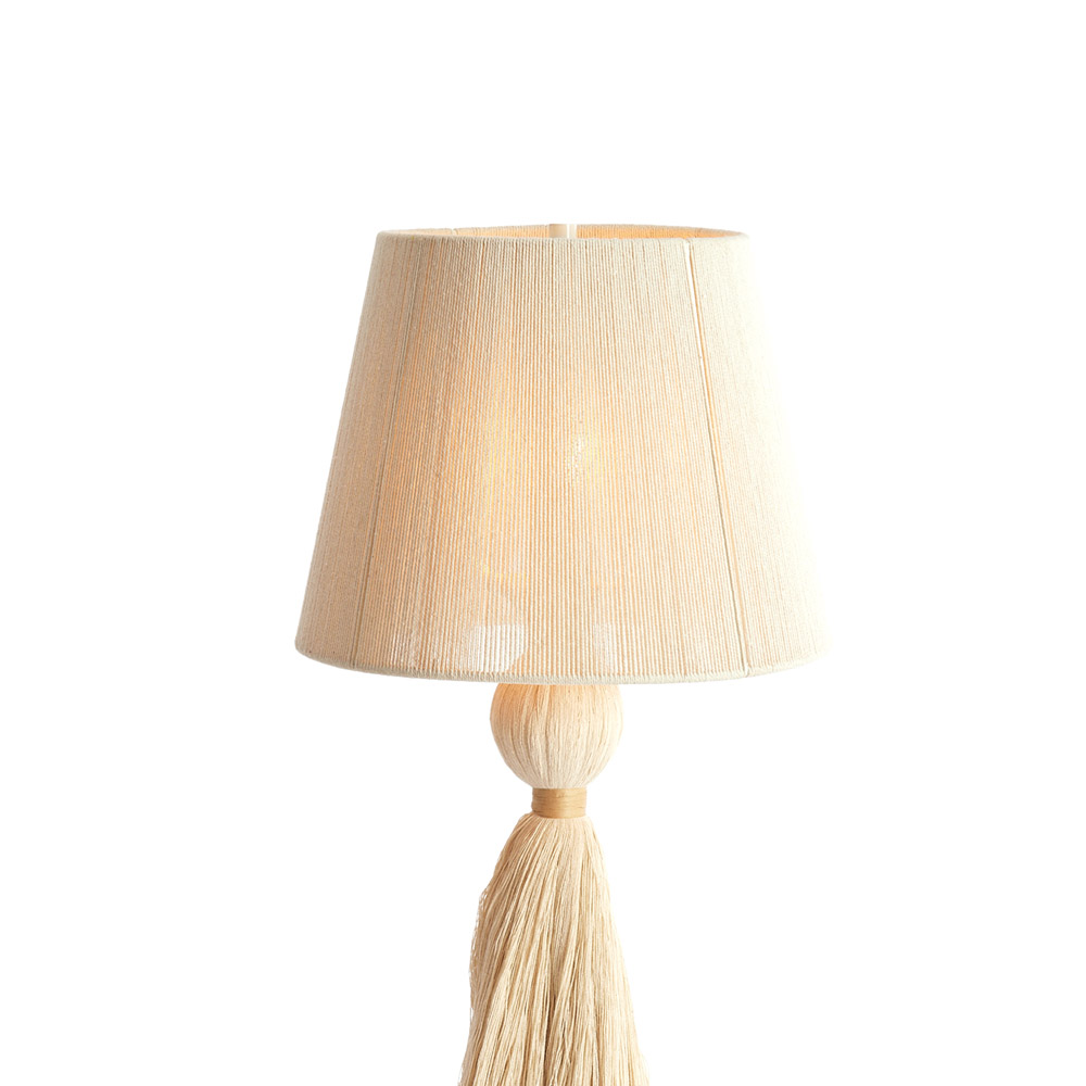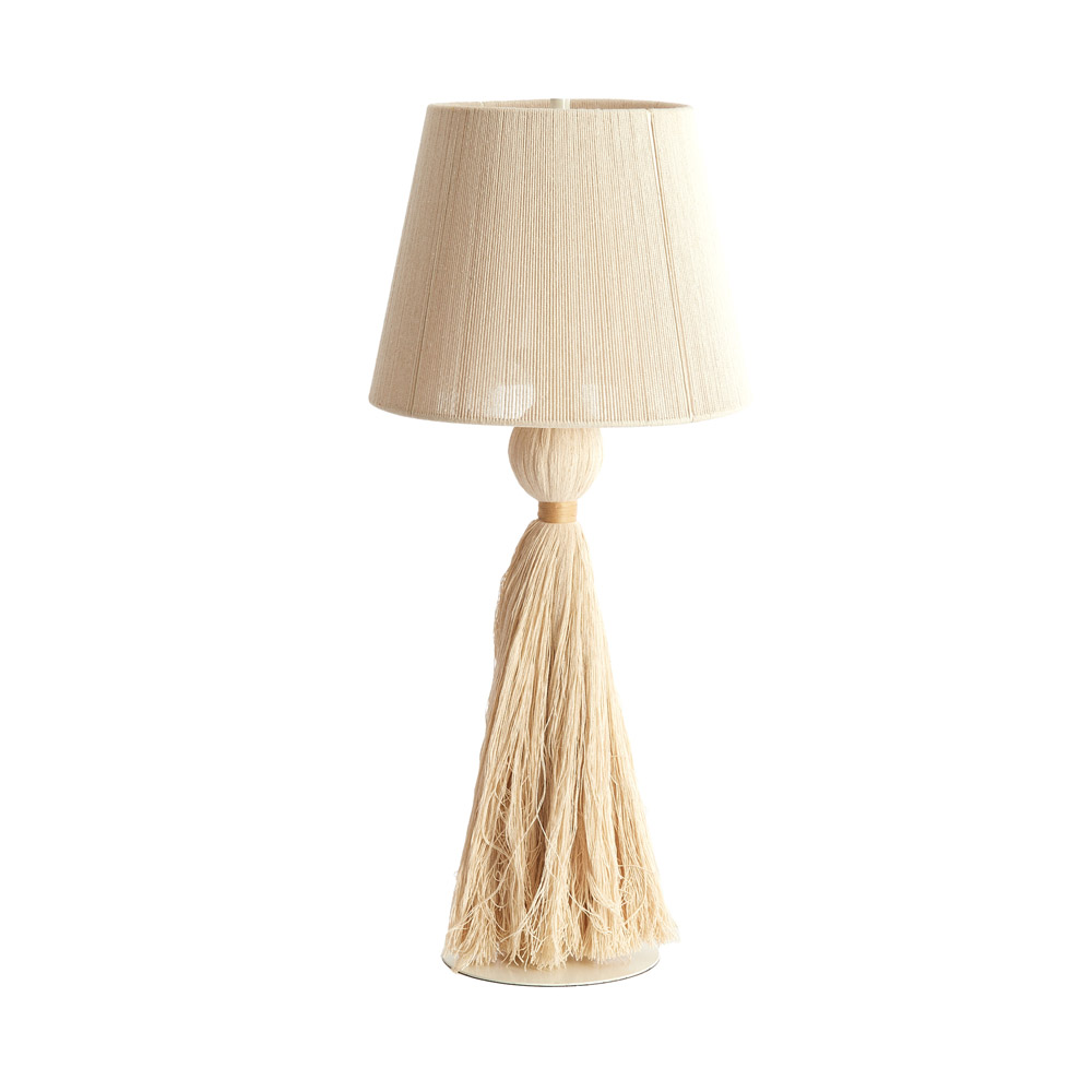 Highlights • Sfeervolle tafellamp met decoratieve franjes • Luxe stofkap met verfijnde textuur • Inclusief kam om de draden naar wens te stylen • Perfect als statement piece op dressoir of bijzettafel • Verkrijgbaar in meerdere warme kleuren