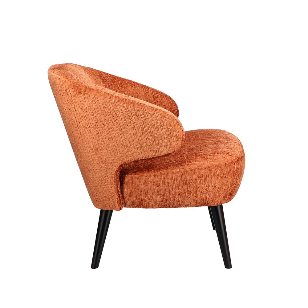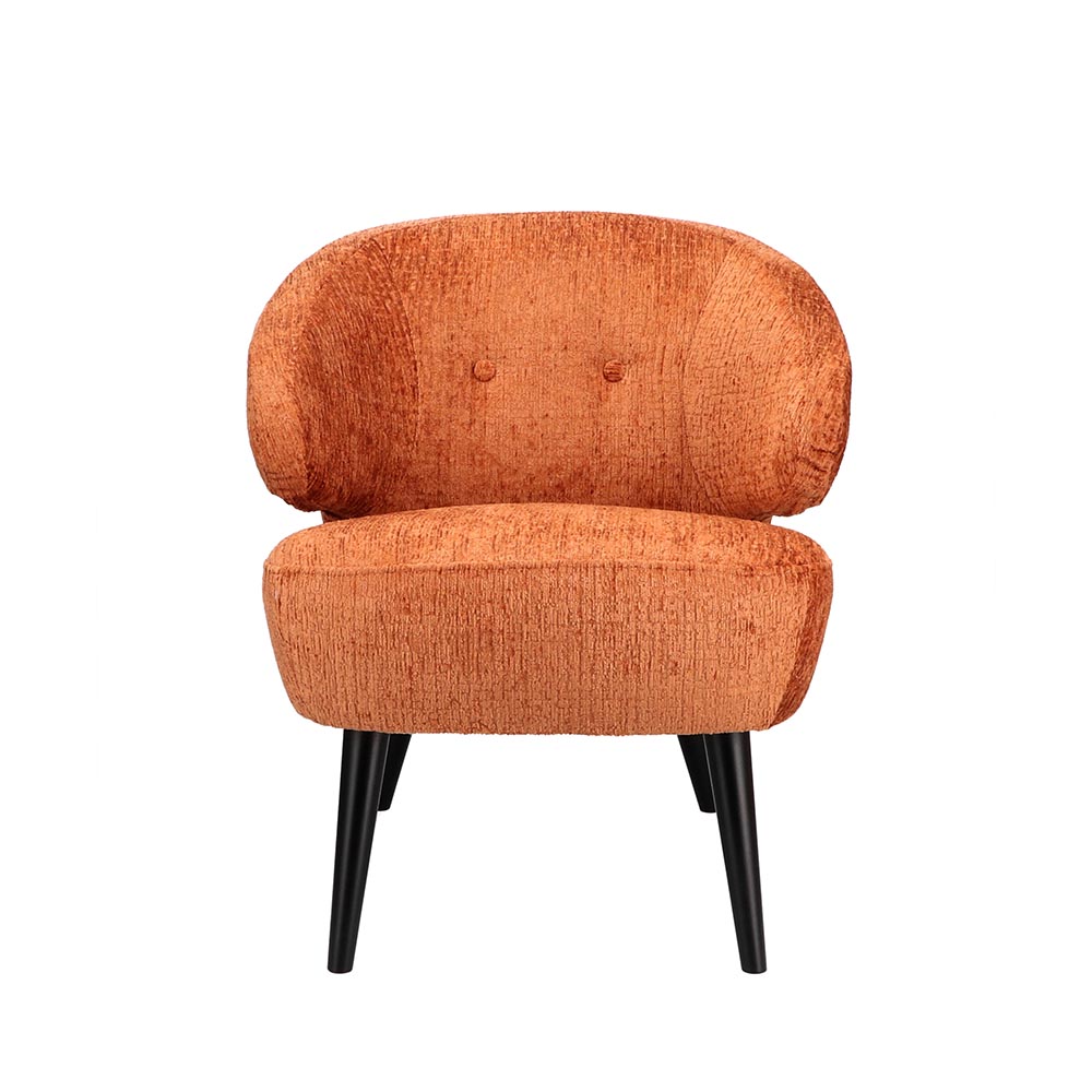 Dit koper kleurige fauteuiltje fleurt het interieur helemaal op. De felle warme kleur is een echte eyecatcher in de woning en maakt de zitkamer echt compleet. De zitting is gemaakt van stof en uitgevoerd in de kleur koper. Dit is gecombineerd met houten pootjes in het mat zwart. De leuning loopt wat breder uit zodat deze ook als armleuning fungeert. Ideaal om heerlijk in te relaxen.