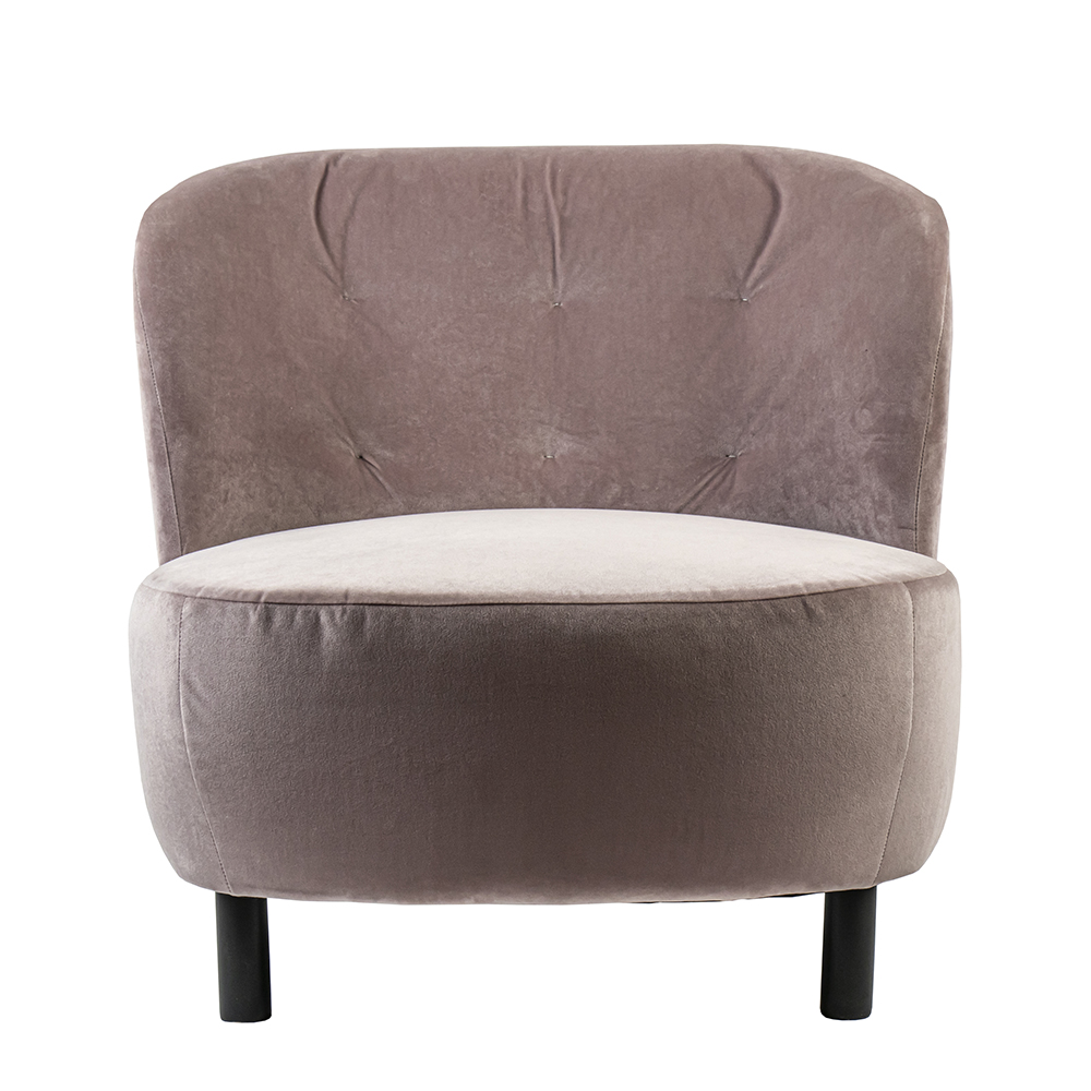 Een trendy relax fauteuil om heerlijk een boek in te lezen of een film te kijken. Het fauteuil heeft een fijn zitcomfort waarbij de brede rugleuning een goede support biedt. De zitting is van stof en uitgevoerd in het velvet roze. De pootjes zijn gemaakt van beuken hout en voorzien van een zwarte finish.