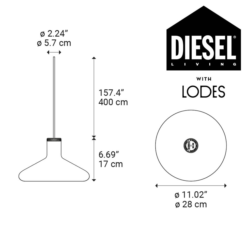 Uit de serie van Diesel Living with Lodes. Deze glazen hanglamp heeft een mooi design van Italiaans komaf. Het glas is geïnspireerd op de flesjes die ook te vinden zijn in laboratoria en geeft een mooi effect doordat deze van binnen glossy is en van buiten mat. Dit geeft het glas een stoere en robuuste uitstraling. Dit wordt versterkt door de hals die donker blijft en is afgewerkt met een mat zwarte kap waarop het logo van Diesel is te vinden. De combinatie maakt de lamp luxe, strak en industrieel tegelijk. De serie Flask bestaat uit 3 modellen die perfect met elkaar te bundelen zijn om zo een prachtige multi-pendel hanglamp te creëren.