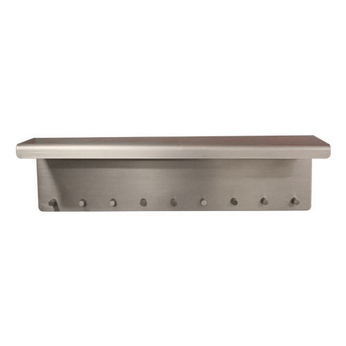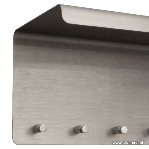 Praktische multifunctionele kapstok van het merk Mioni. Deze kapstok heeft 9 haken en is voorzien van een hoedenplank. De hoedenplank en achterwand zijn uit 1 stuk RVS vervaardigd. De hoek en de ‘luifel’ zijn mooi gebogen. Zo krijgt de strakke, moderne kapstok zijn karakter. Deze plank zorgt ervoor dat dit een ideale plek is om uw sleutels, handschoenen, sjaals of andere zaken te bewaren. Ondanks de 9 haken is de kapstok niet groot waardoor hij al snel in een kleine ruimte zoals de hal/gang past.