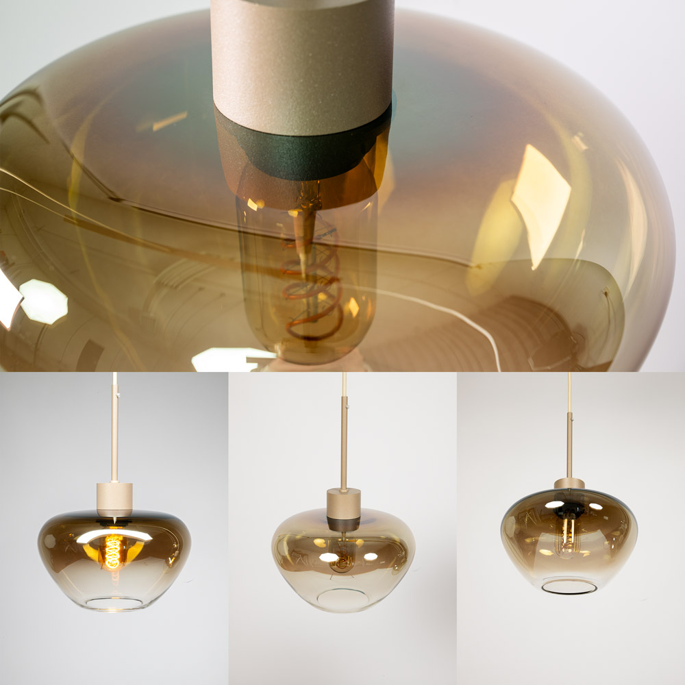 Het amberkleurige glas verspreidt het licht warm en uitnodigend. Dankzij de E27 fittingen kies je zelf de lichtbron die past bij jouw gewenste sfeer. Met dimbare lichtbronnen en een externe dimmer regel je bovendien moeiteloos de lichtintensiteit — van functioneel tot zacht avondlicht.
