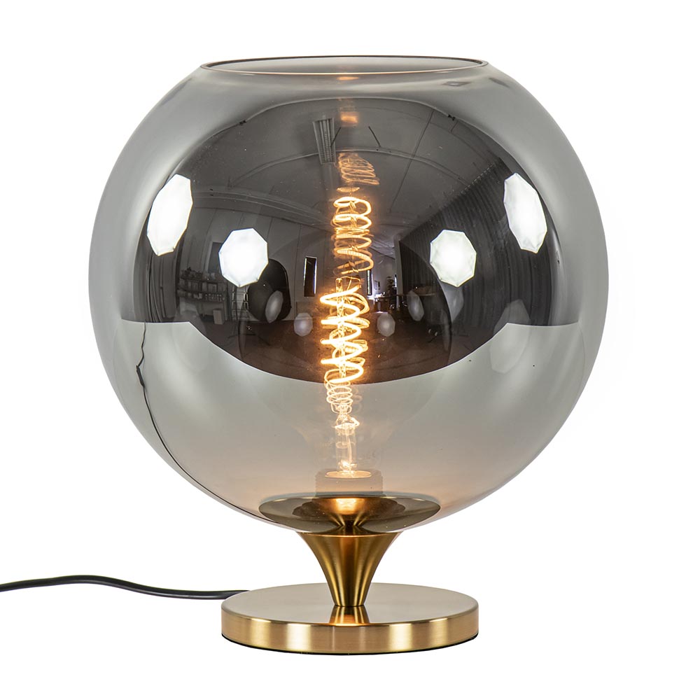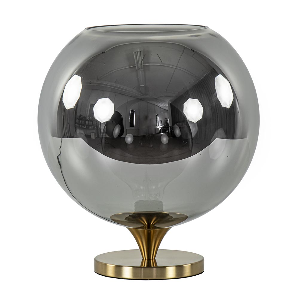 Homepagina / Lampen / Tafellampen / Globe tafellamp smoke/titanium met gouden voet