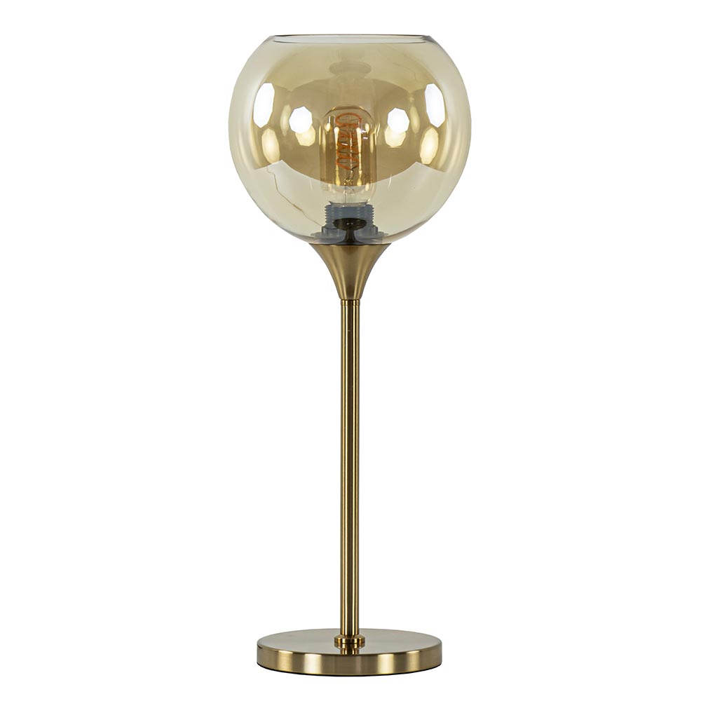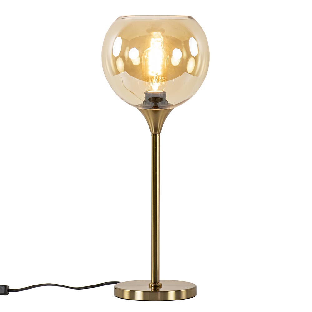 Homepagina / Lampen / Tafellampen / Gouden tafellamp met amber glazen bol 20 cm