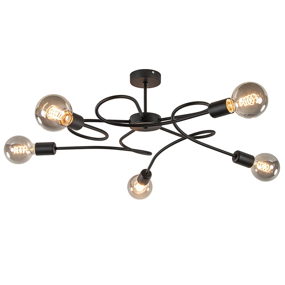 Homepagina / Lampen / Plafondlampen / Grote 5-lichts plafondlamp zwart exclusief lichtbronnen
