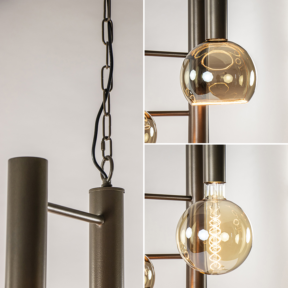 De lamp wordt geleverd zonder lichtbronnen. De afgebeelde lichtbronnen zijn ter illustratie en worden vaak aangezien voor kapjes. Je kunt zelf kiezen welke E27- en GU10-lichtbronnen het beste passen bij jouw gewenste sfeer en stijl.