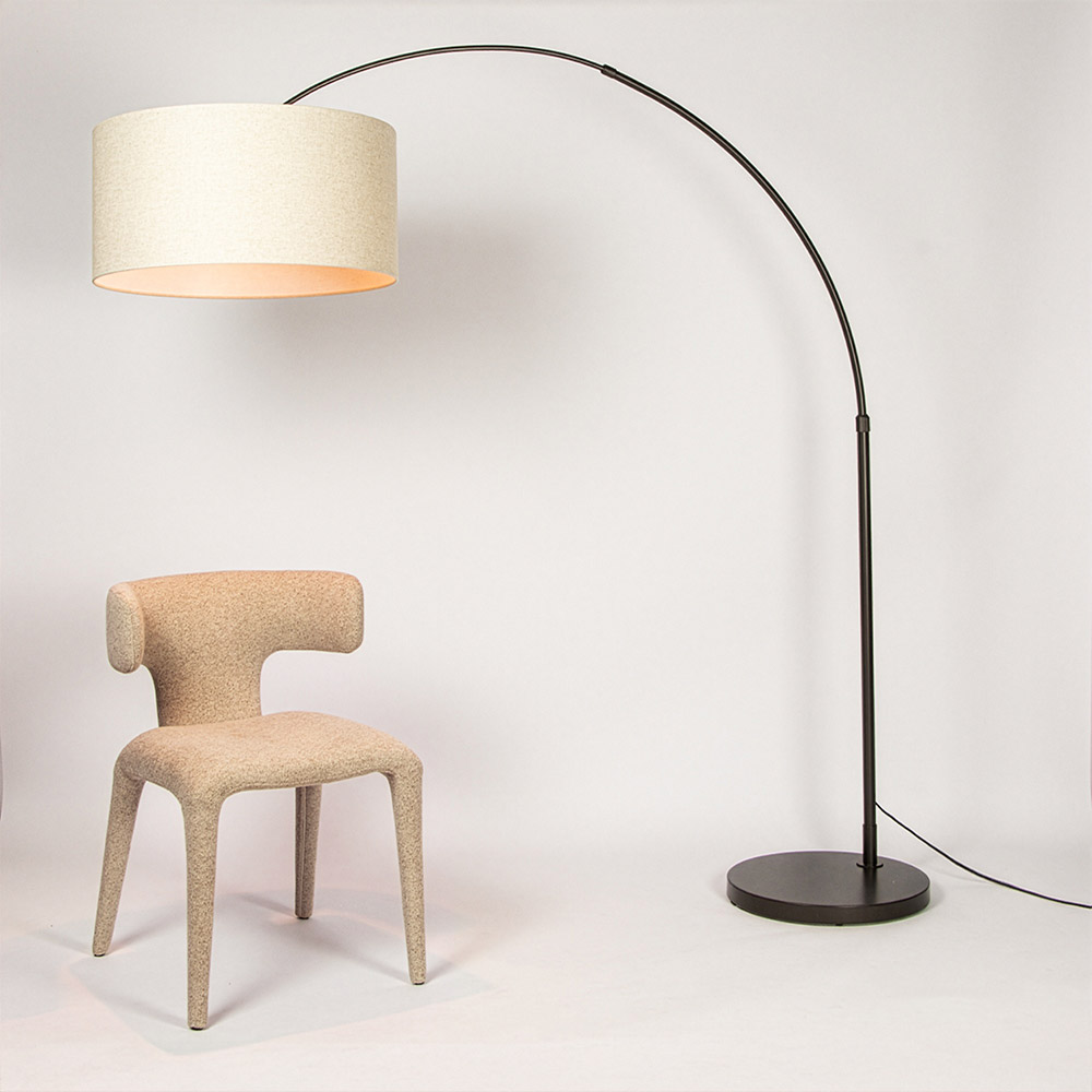 De Meander booglamp is een echte blikvanger dankzij zijn royale afmetingen en moderne, vloeiende lijnenspel. Deze indrukwekkende booglamp wordt geleverd zonder kap, waardoor je volledige vrijheid hebt om zelf een passende E27-kap of lichtbron te kiezen. Zo creëer je precies de look en lichtsfeer die bij jouw interieur past.