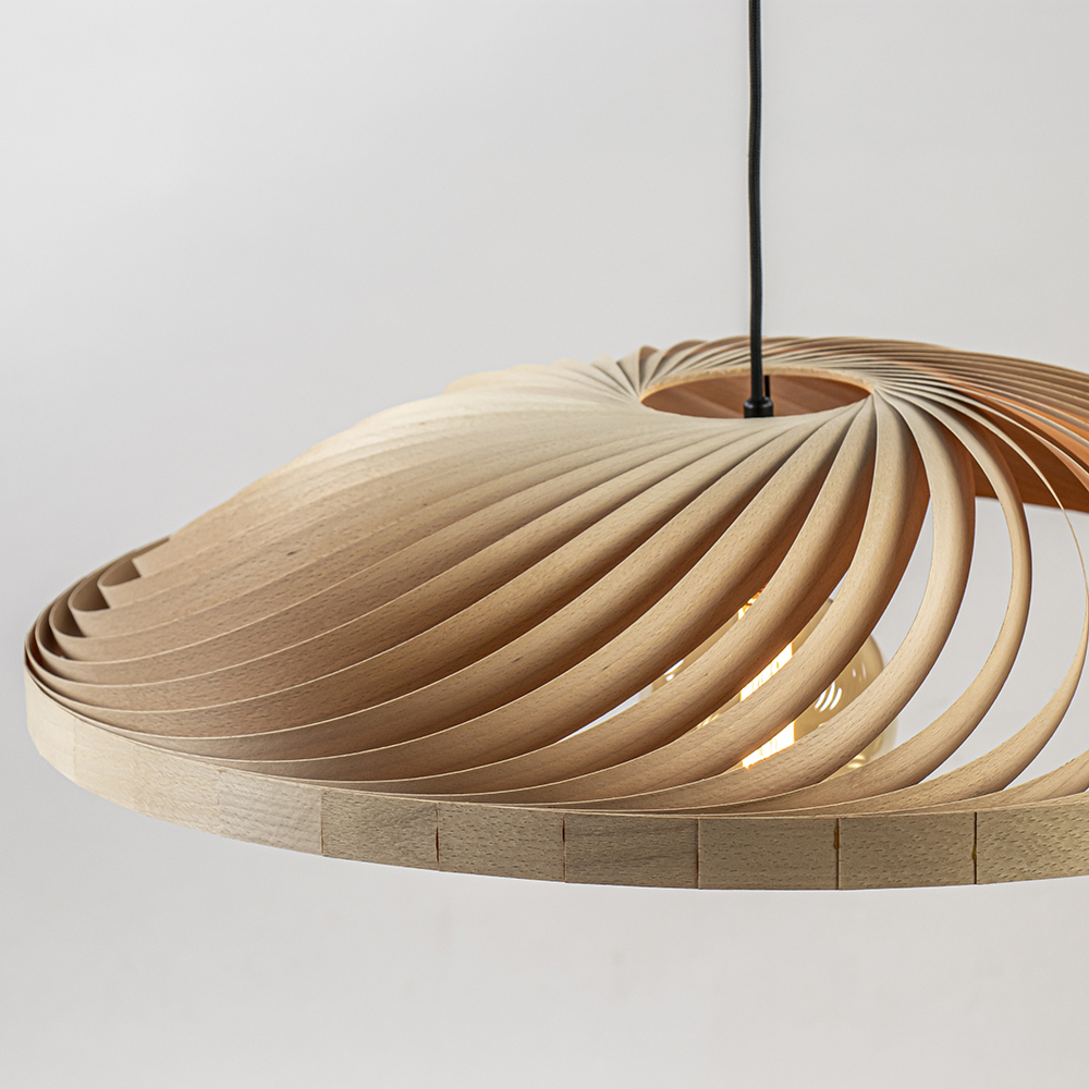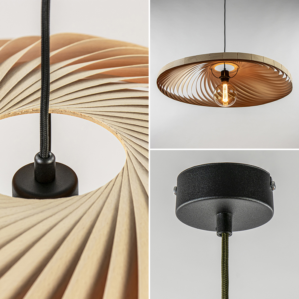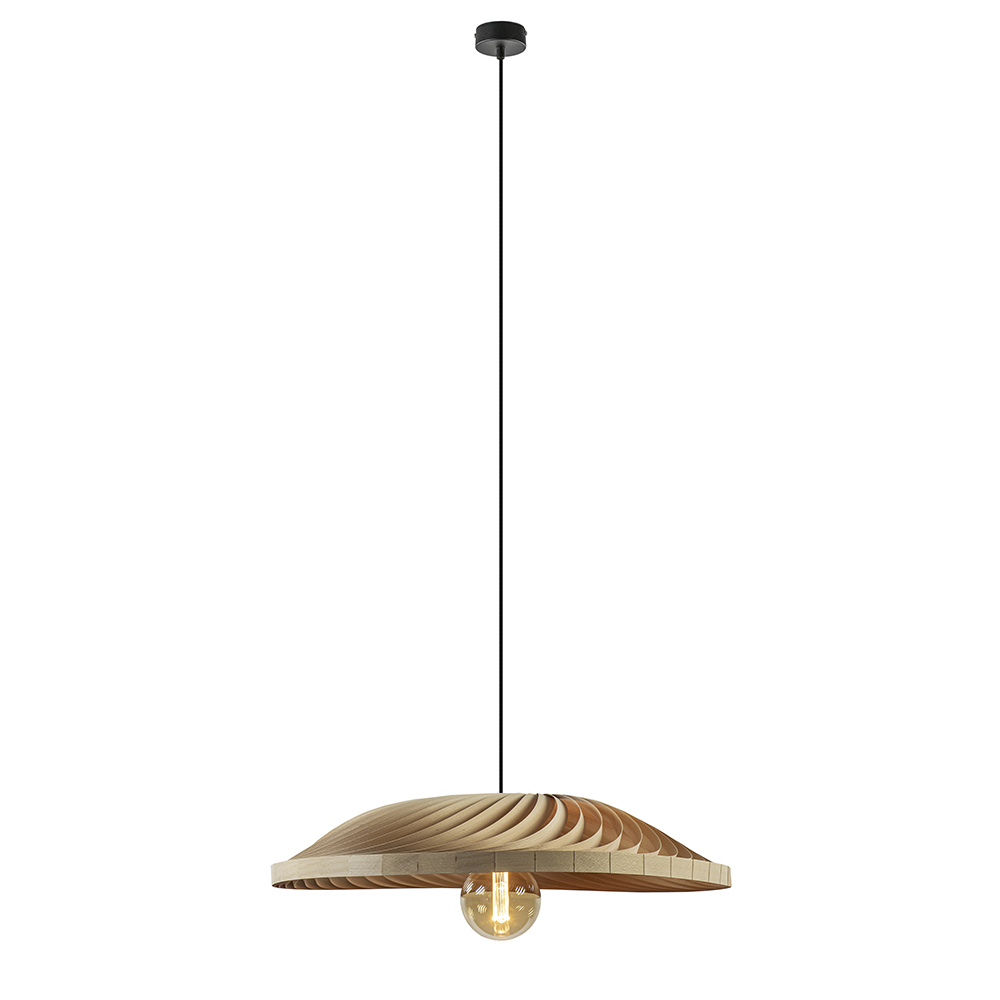 – afm: Ø70×215 cm – kap: Ø70×12 cm – bevestiging: Ø8×3 cm – metaal, mat zwart – hout, naturel – zwart snoer – exclusief lichtbron (E27) – dimbaar (exclusief)