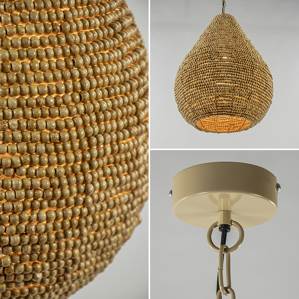 – afm: Ø40×142 cm – kap: Ø40×51 cm – bevestiging: Ø10×3 cm – kralen – bruin – exclusief lichtbron (E27) – dimbaar (exclusief)