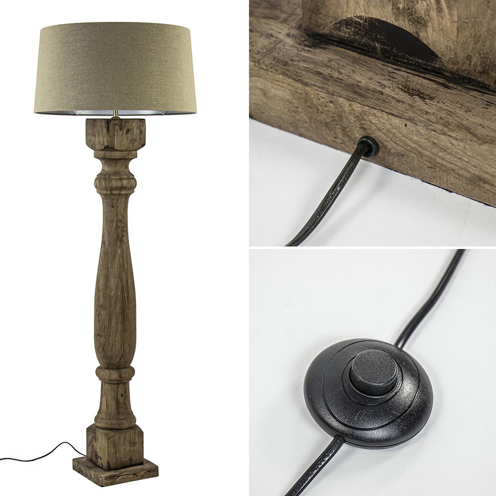 – hoogte: 135 cm – massief hout – metaal, brons – E27 fitting – exclusief kap – exclusief lichtbron (E27) – zwart snoer: 210 cm