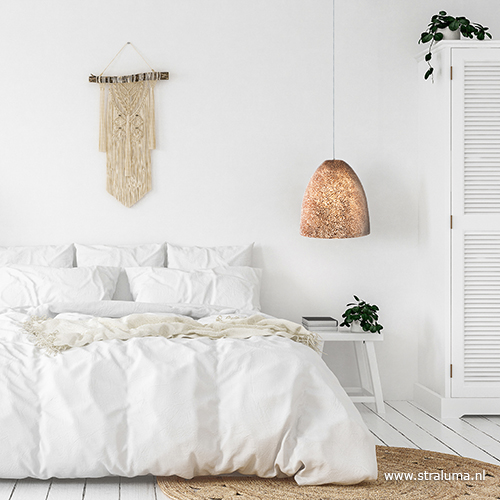 Met deze grote hanglamp waan je je direct op het strand. De kap is gemaakt met een fiberglas mal waarin gebroken stukjes capiz schelpen zijn verwerkt. De schelpen geven een mozaïek achtig effect en zorgen voor een fijne sfeervolle verlichting. De grote schelpenlamp hangt aan een transparant snoer die naar wens is in te korten. De lamp past prima boven een eettafel of salontafel, maar kan ook leuk worden verwerkt in de slaapkamer.