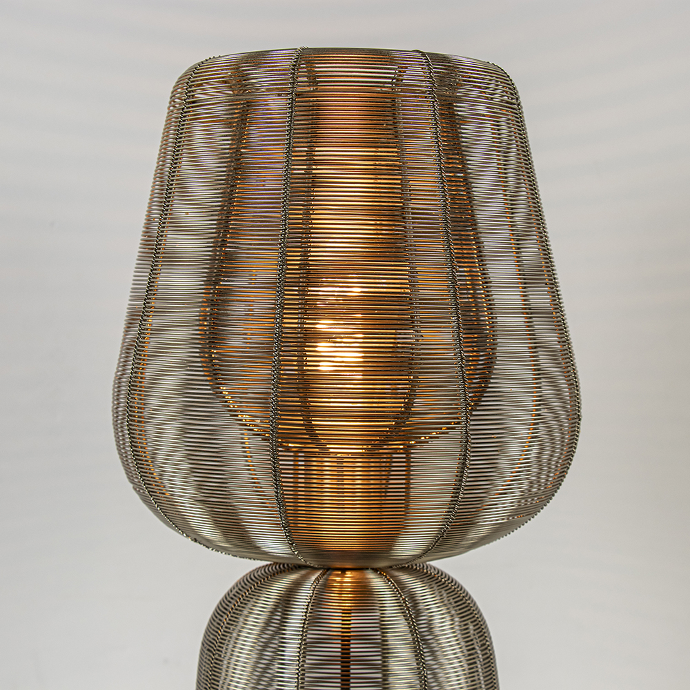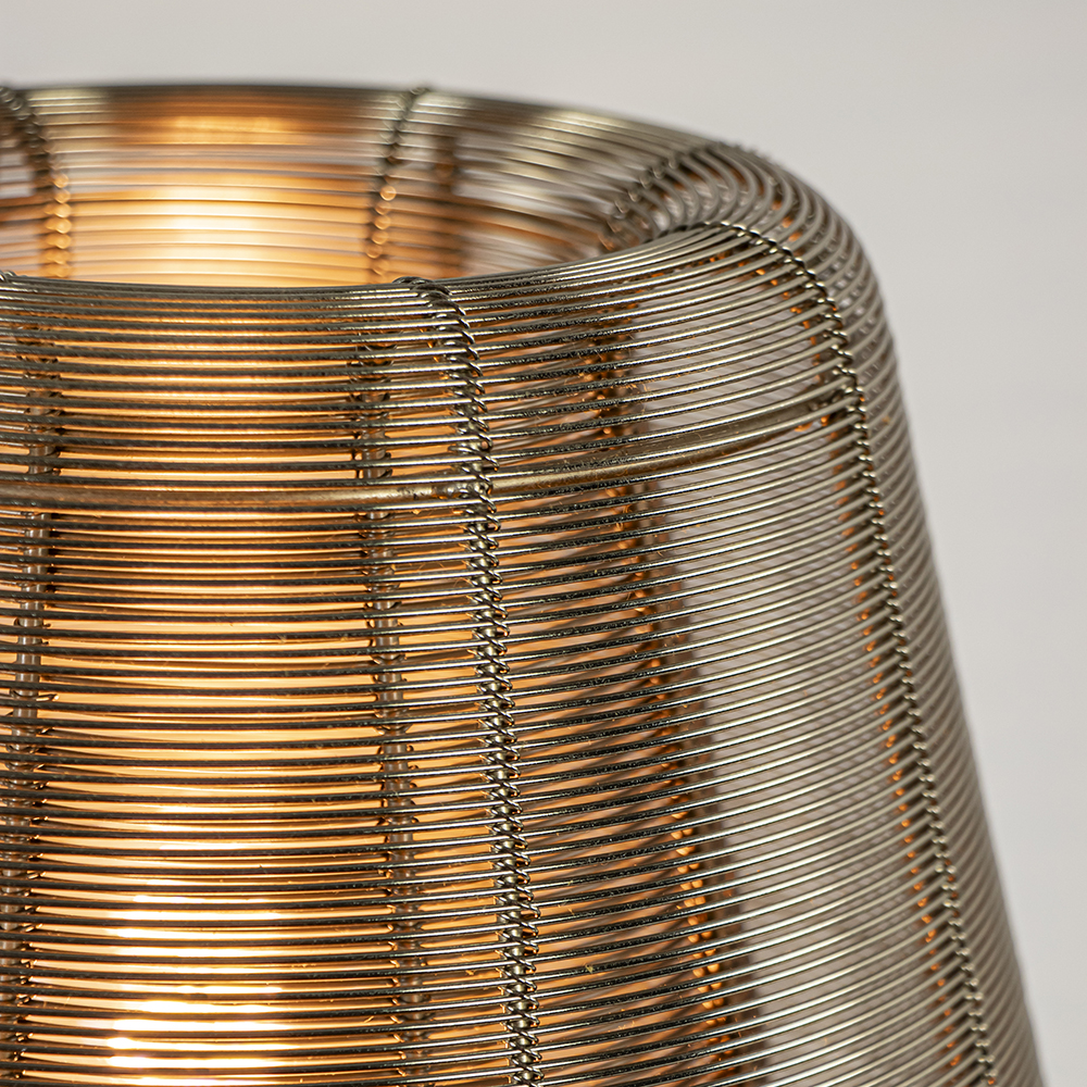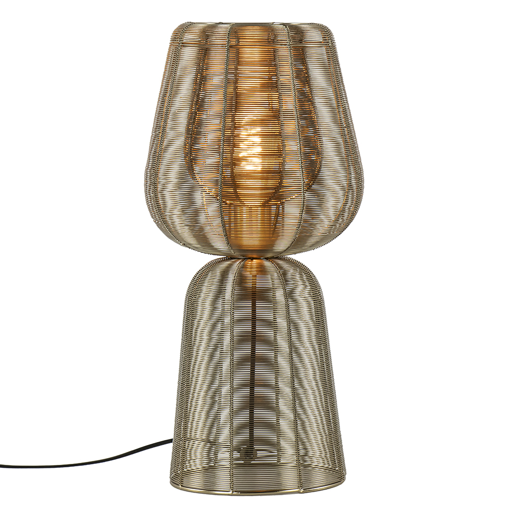 Tafellamp Aboso van Light and Living zorgt voor stijl en functie. De metalen draadlamp is uitgevoerd in het goud wat de lamp een trendy look geeft. In het bovenste gedeelte is de lamp voorzien van een E27 fitting. Door de open structuur laat de tafellamp prima licht door zodat er een sfeervolle en fijne lichtverspreiding ontstaat. Aboso van Light van Living is voorzien van een zwart snoer met een lengte van 170 cm en wordt geleverd exclusief lichtbron.