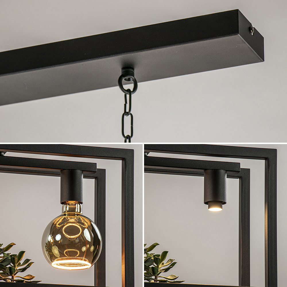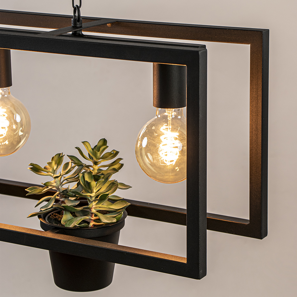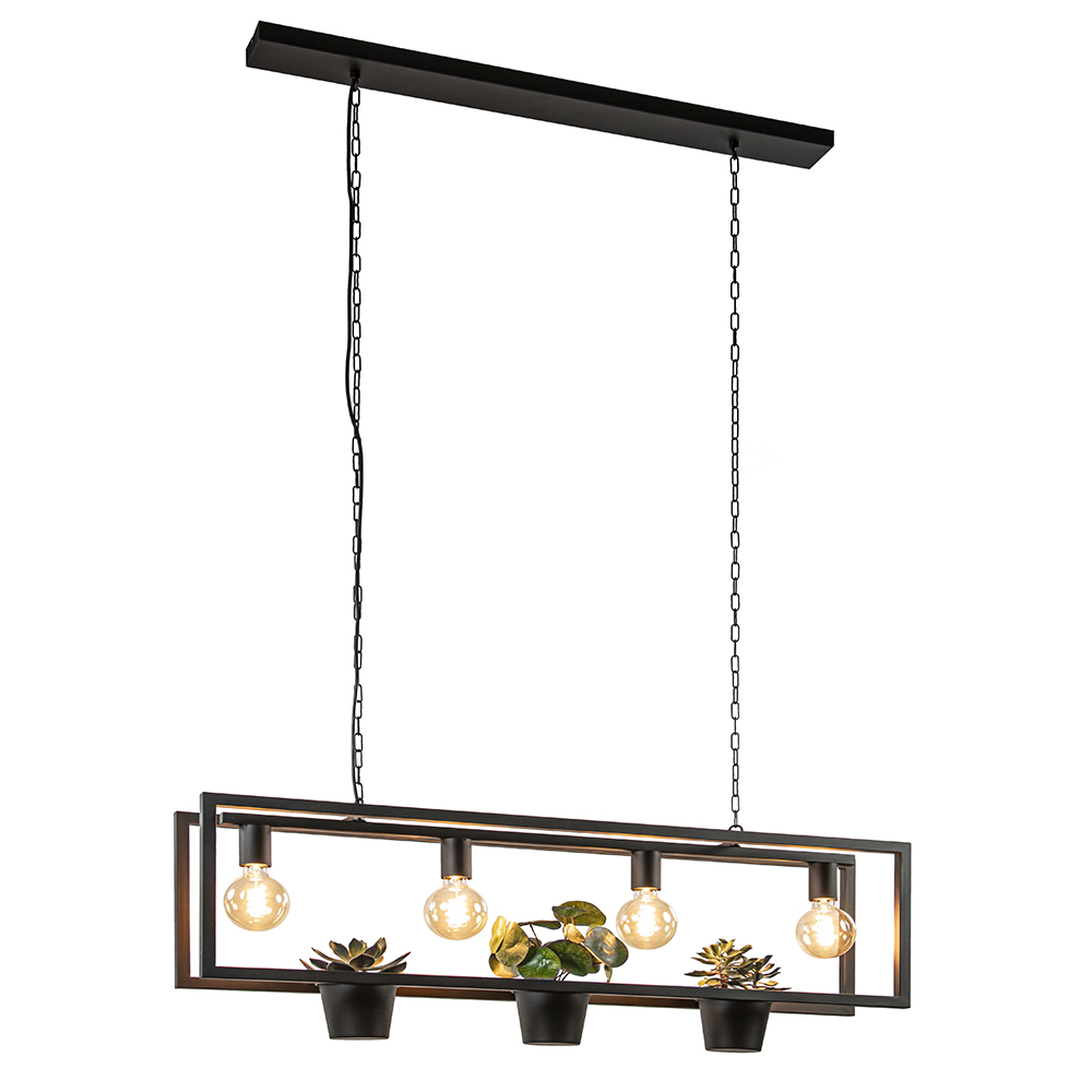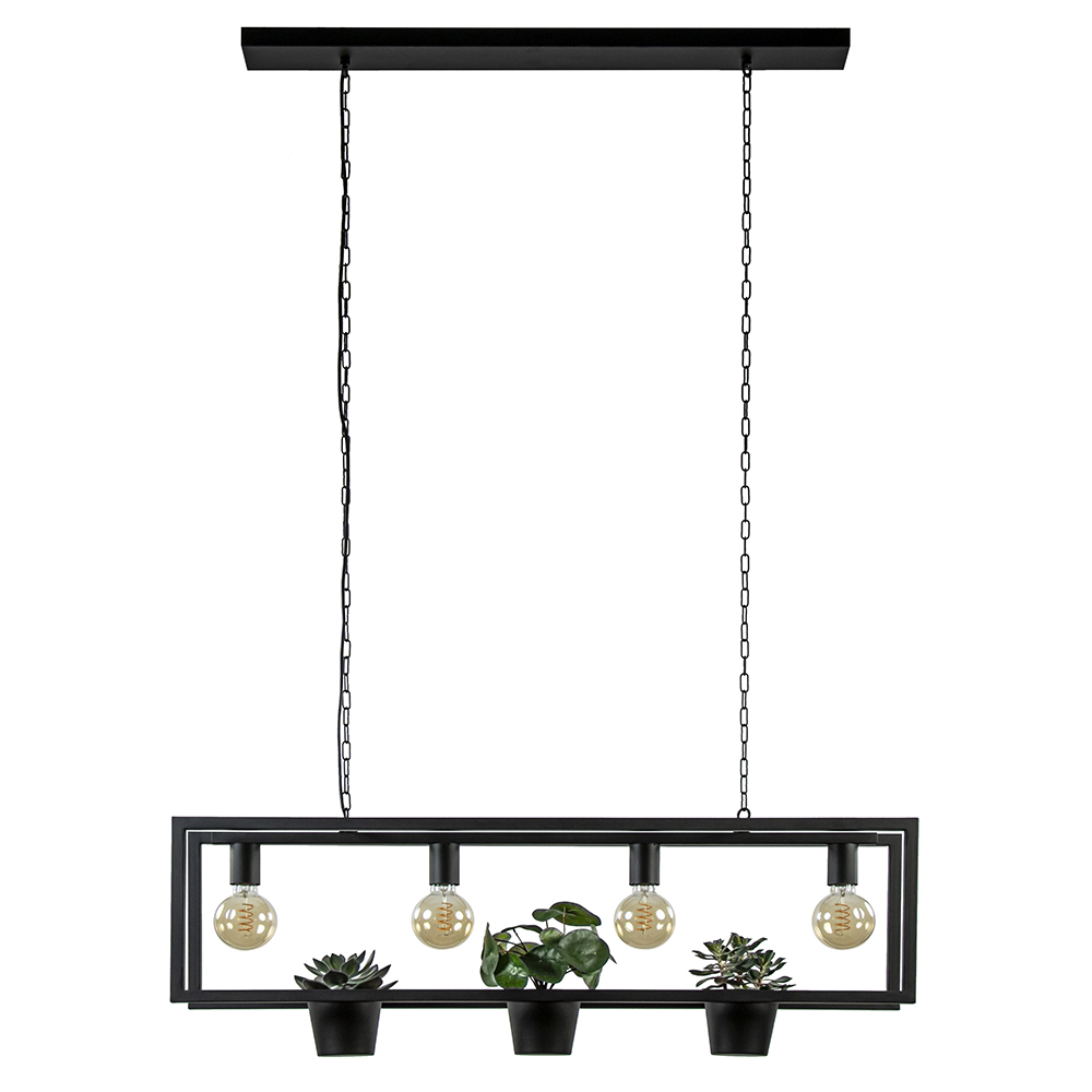 – afmetingen: 120x20x150 cm – kap: 20x110x30 cm – plafondbevestiging: 90x8x3 cm – metaal – zwart – exclusief lichtbronnen (4x E27) – dimbaar (exclusief) – exclusief plantjes