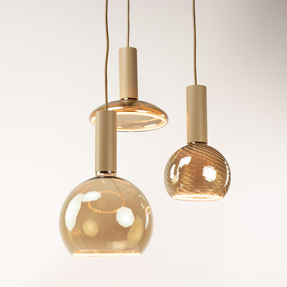 De lamp wordt geleverd zonder lichtbronnen. De afgebeelde lichtbronnen zijn ter illustratie en worden vaak aangezien voor kapjes. Je kunt zelf kiezen welke E27- en GU10-lichtbronnen het beste passen bij jouw gewenste sfeer en stijl.
