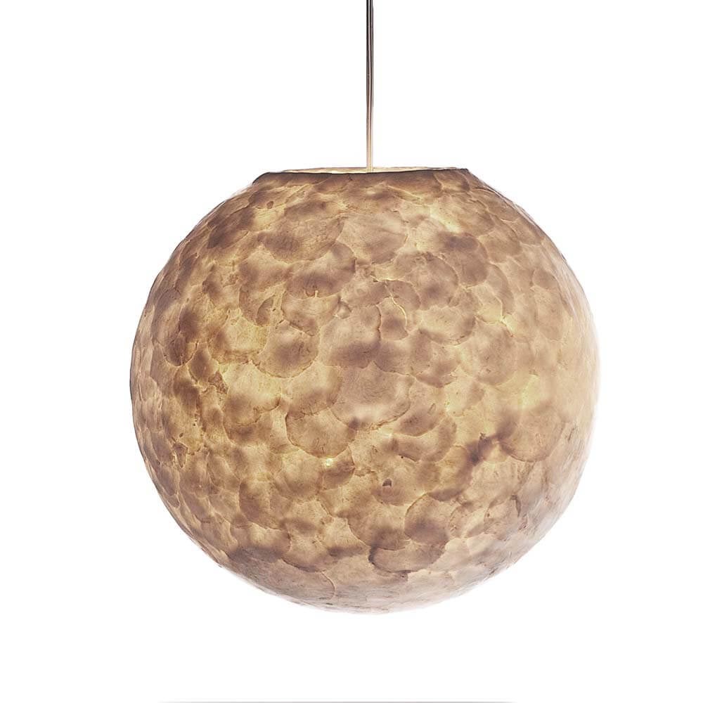 Deze lamp is gemaakt van capiz schelpen en geven een warme sfeer in elk interieur. De doorsnede van de bol is 40 cm. De lengte van de lamp is verstelbaar. Deze lamp maakt deel uit van een leuke serie die bestaat uit diverse tafellampen, hanglampen, vloerlampen en een wandlamp. De lamp is ook geschikt voor energiezuinige lichtbronnen zoals spaar- en led lampen.