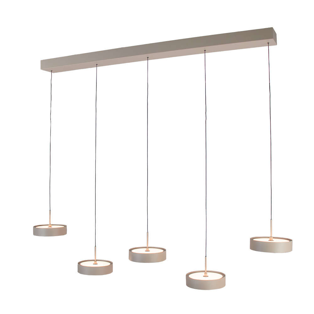 Deze leuke hanglamp is voorzien van vijf ronde schijven die zijn uitgerust met LED up & down light. Dit creërt niet alleen functioneel licht, maar ook prachtige sfeerverlichting. Uitgevoerd in een crème kleur en voorzien van een handig systeem om de hoogte van de lamp gemakkelijk te kunnen verstellen.