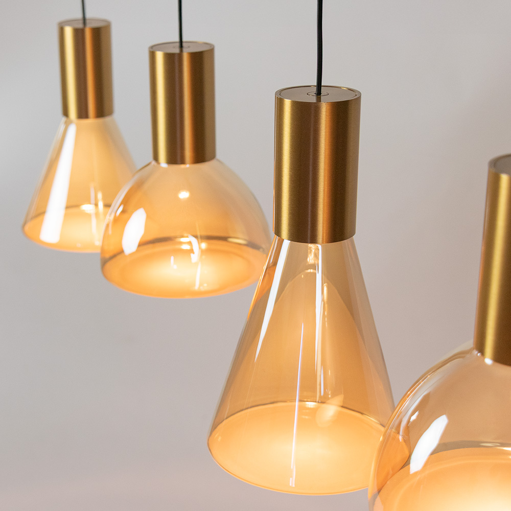 Homepagina / Lampen / Hanglampen / Hanglamp 5L – Messing met amber glas & zwart