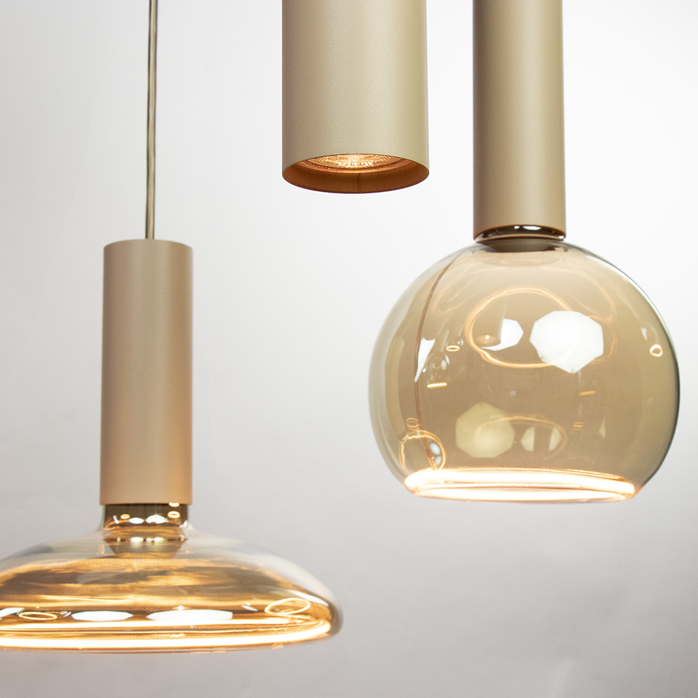 De lamp wordt geleverd zonder lichtbronnen. De afgebeelde lichtbronnen zijn ter illustratie en worden vaak aangezien voor kapjes. Je kunt zelf kiezen welke E27- en GU10-lichtbronnen het beste passen bij jouw gewenste sfeer en stijl.