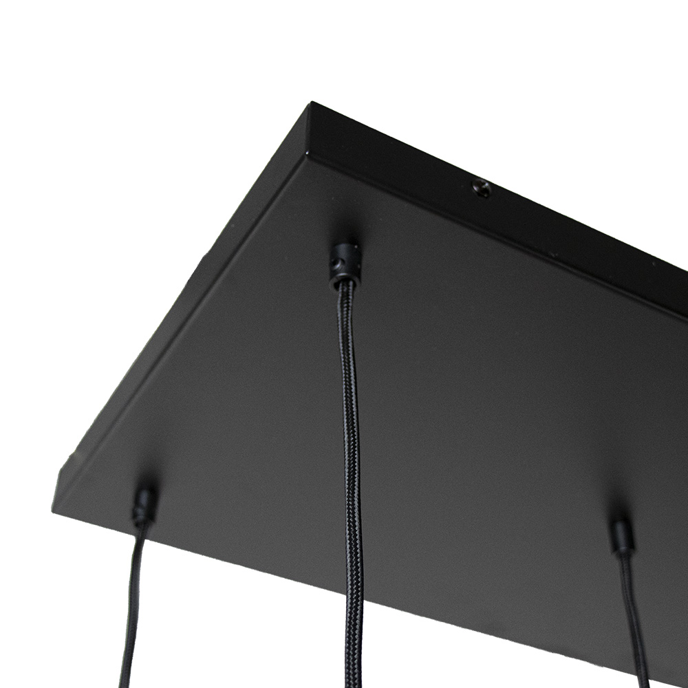 – Afmetingen: 110x30x140 cm (lxbxh) – Pendel: Ø5×10 cm – Cilinder: Ø5.5×33 cm – Plafondbevestiging: 110x30x3,5 cm – Kleur: zwart – Materiaal: metaal – Fittingen: 5x E27 | 3x GU10 (excl. Lichtbronnen) – Dimbaar (excl.)