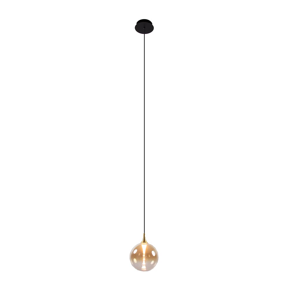 Een hanglamp die uit een heldere, glazen bol bestaat in de kleur Amber en verstelbaar is in hoogte. De geïntegreerde ledlamp verspreidt een warm wit licht. Zijn tijdloze bolvormig ontwerp doet het goed in zowel klassieke interieurs als moderne vormgevingen.