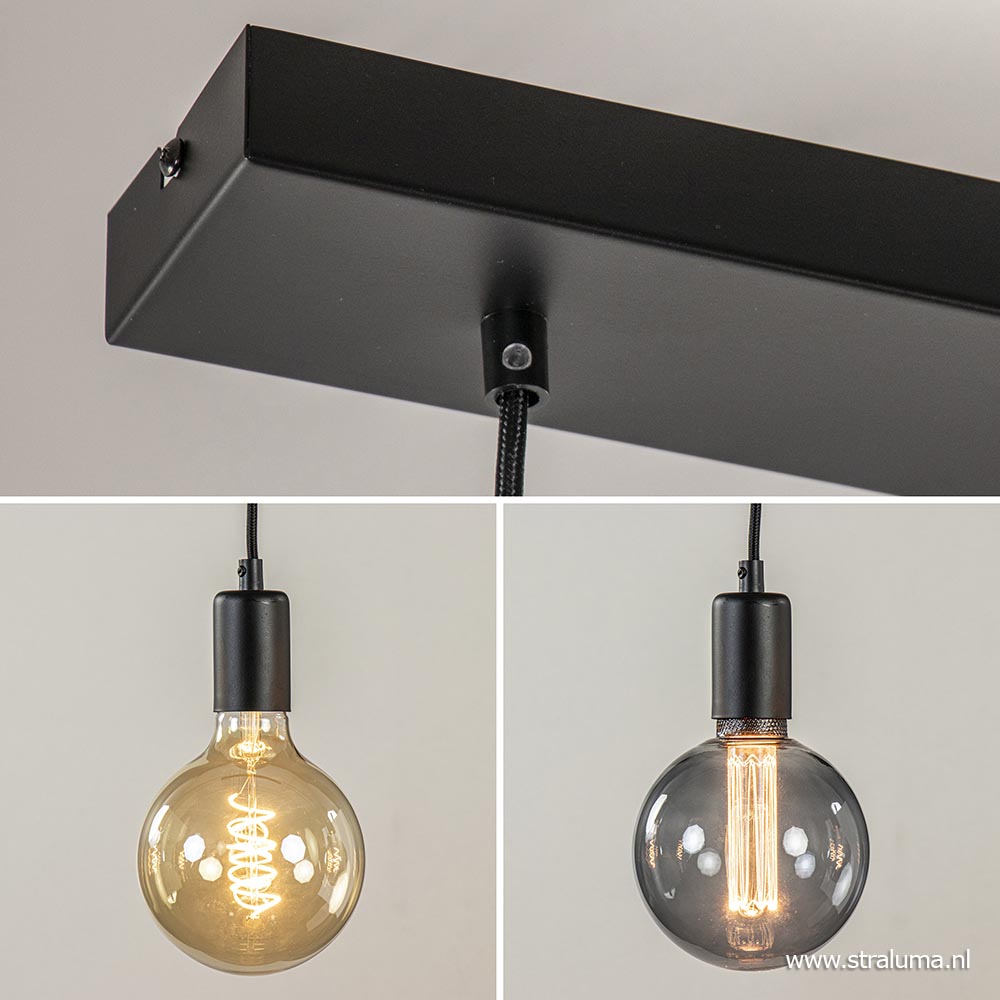 Homepagina / Lampen / Eettafellampen / Hanglamp balk 110cm + 5x pendel zwart