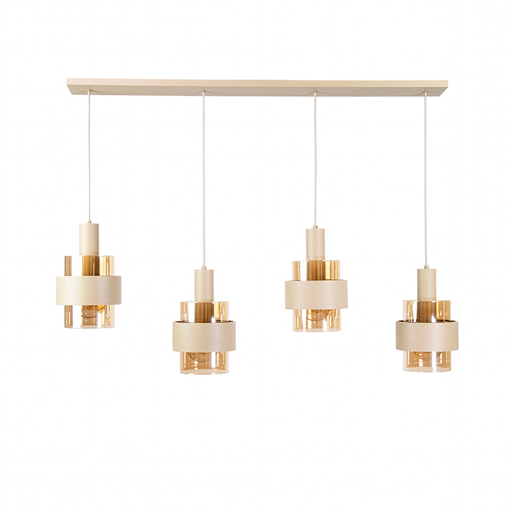 Homepagina / Lampen / Eettafellampen / Hanglamp balk Marrone 4L in zand kleur met amber glas