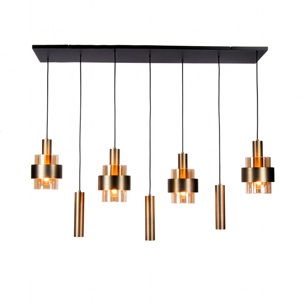 Homepagina / Lampen / Eettafellampen / Hanglamp balk Marrone 7L in brons kleur met amber glas