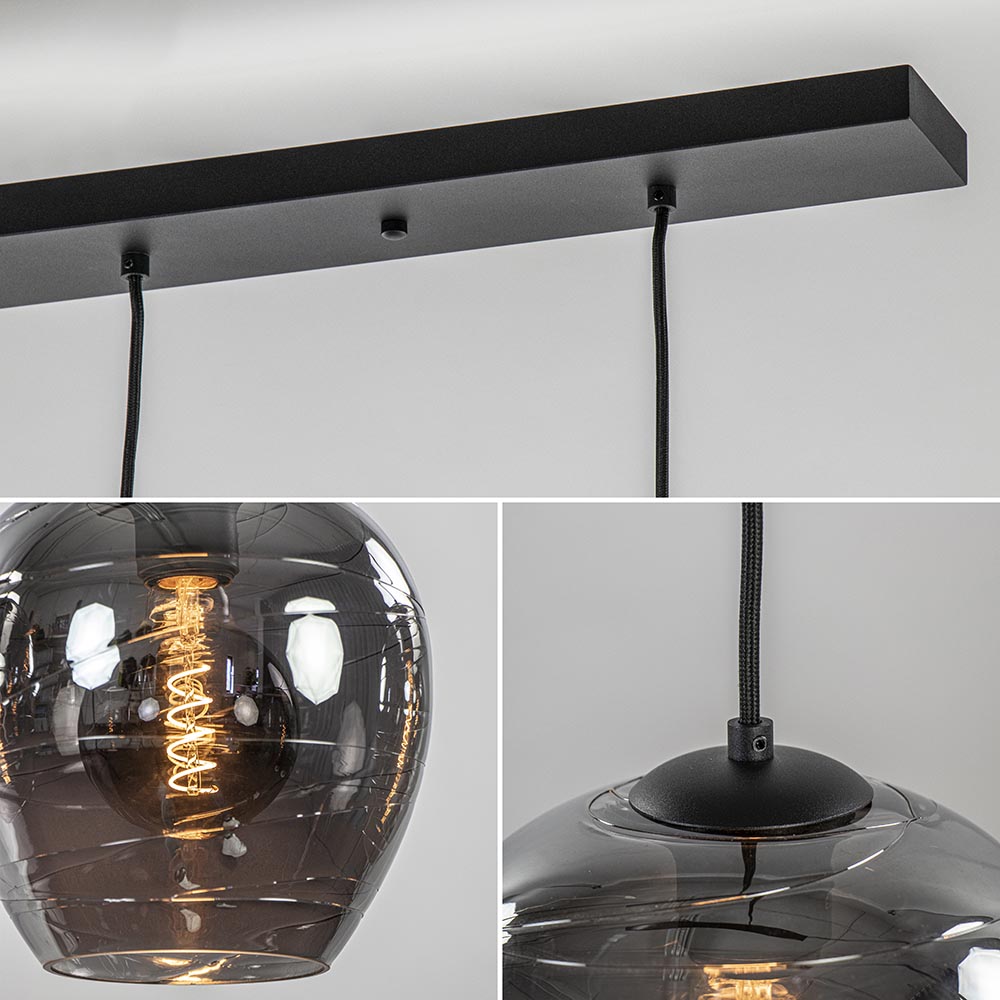 Homepagina / Lampen / Eettafellampen / Hanglamp balk zwart 5-lichts smoke glas