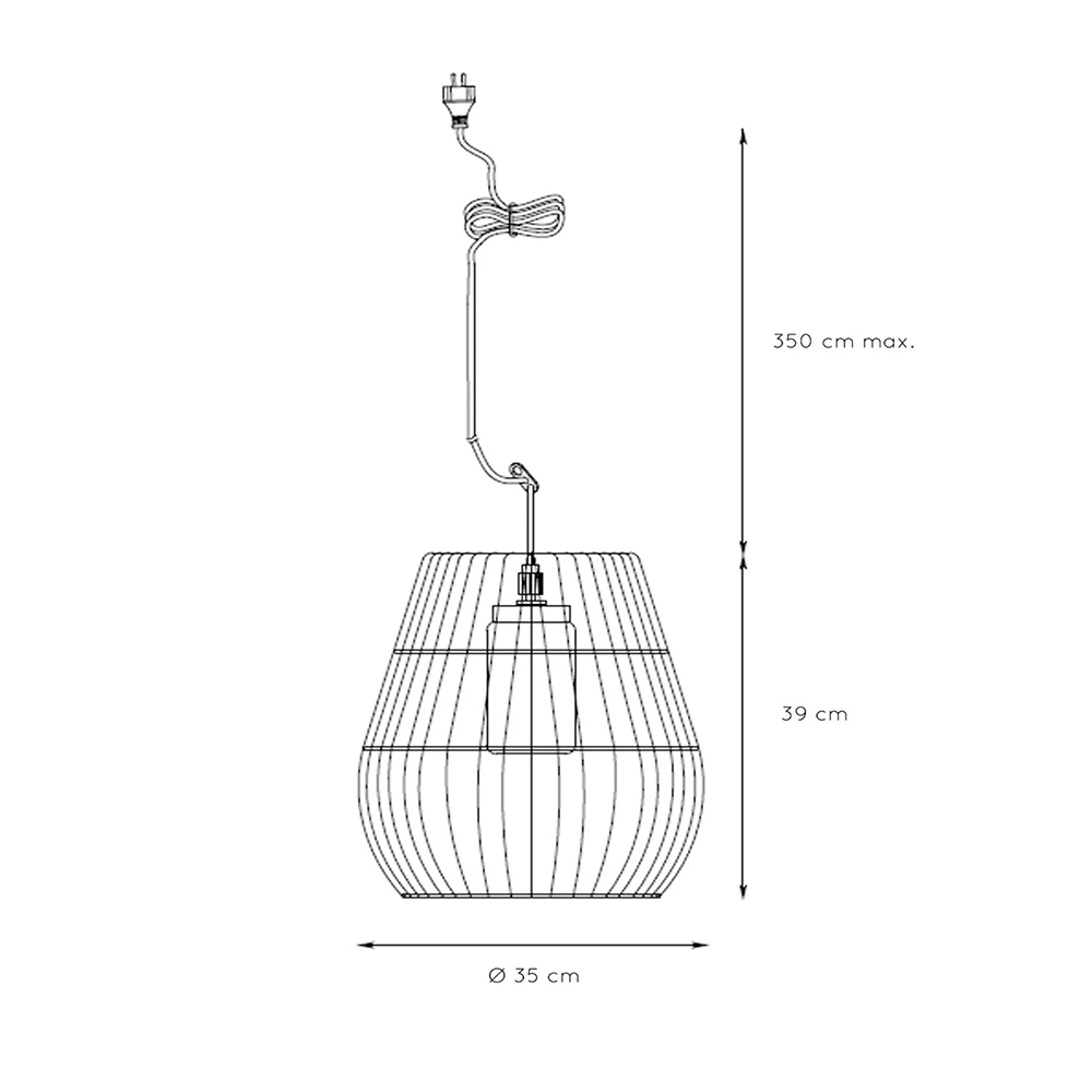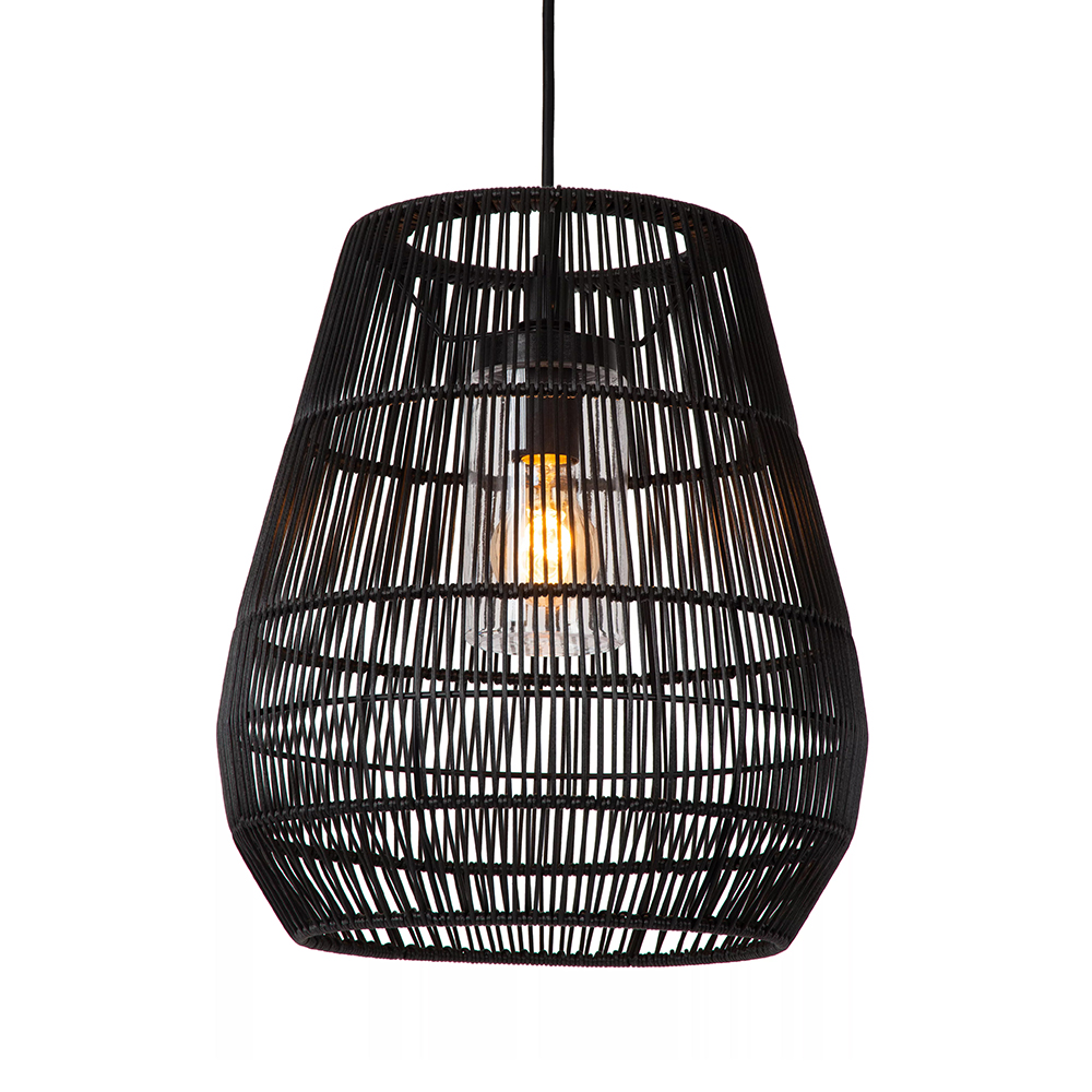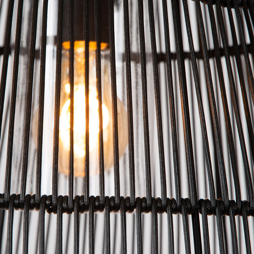 – kap: Ø35×39 cm – lengte snoer: 350 cm – metaal, mat zwart – rotan, zwart – exclusief lichtbron (E27)
