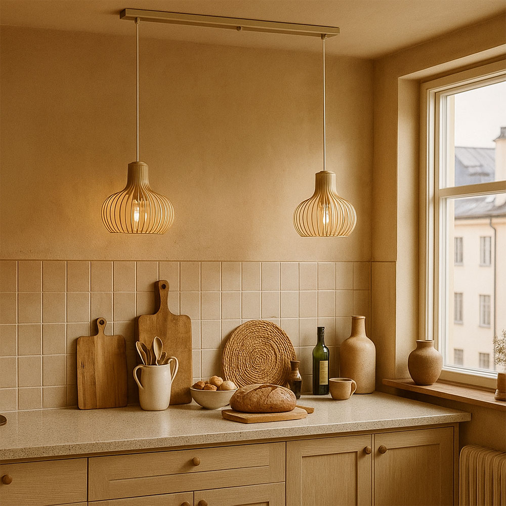 Homepagina / Lampen / Bureaulampen / Hanglamp Daria 2L Balk – Beige