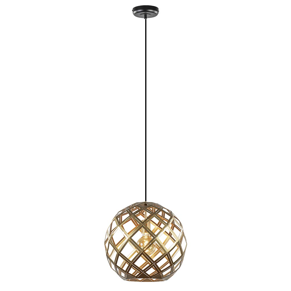 Deze gouden bol maakt het interieur helemaal af. De trendy hanglamp is gemaakt van metaal en afgewerkt met een mat gouden finish. Dit geeft de hanglamp bol een trendy look die mooi is toe te passen in diverse woonstijlen. Door z’n grootte past de lamp ook gemakkelijk in diverse ruimtes als de hal, woonkamer of slaapkamer. De ronde hanglamp heeft een open structuur waardoor deze een goede lichtdoorlating heeft. De lichtbron is dan ook mede sfeerbepalend. De gouden bol hangt aan een zwart snoer die naar wens is in te korten en wordt met een ronde bevestiging opgehangen.
