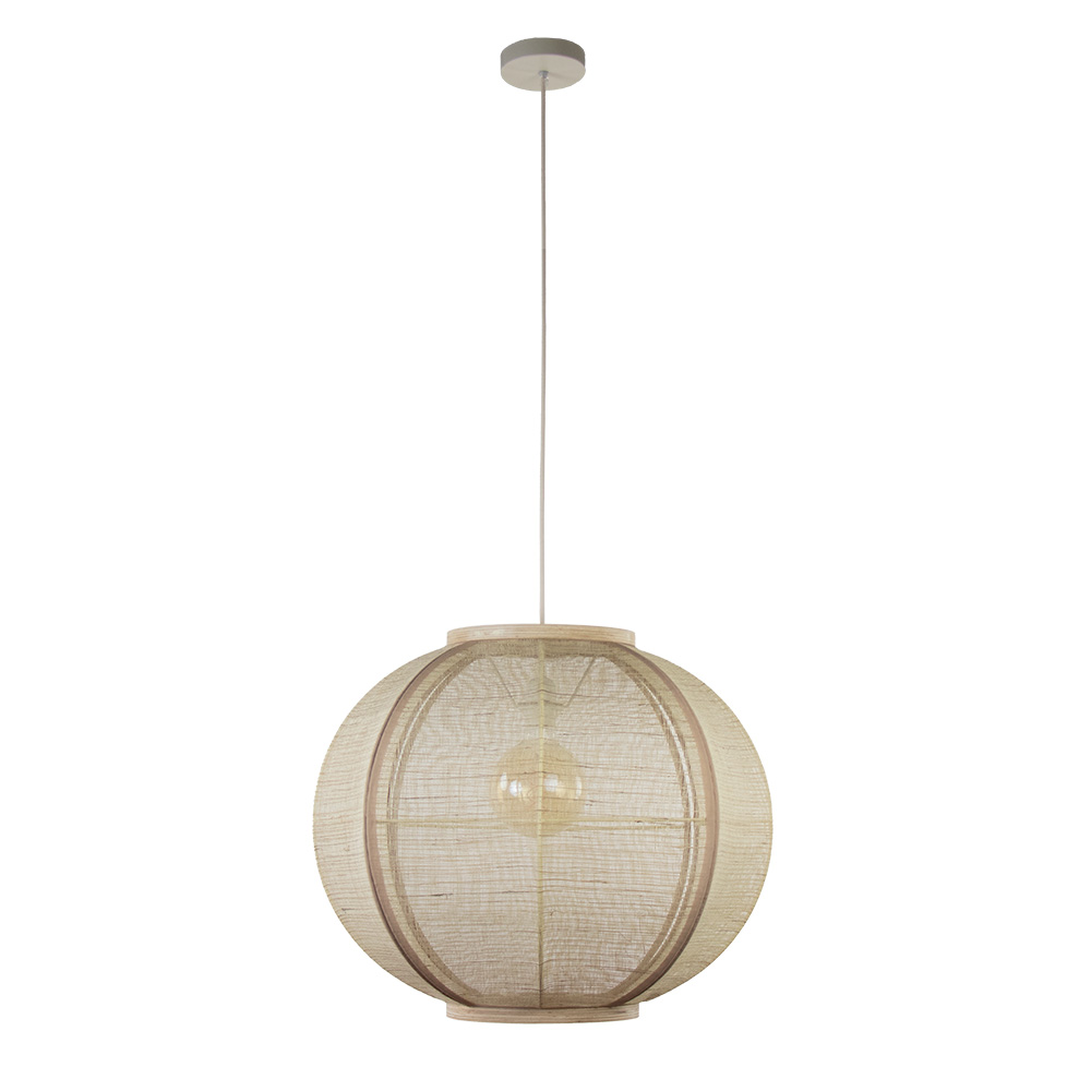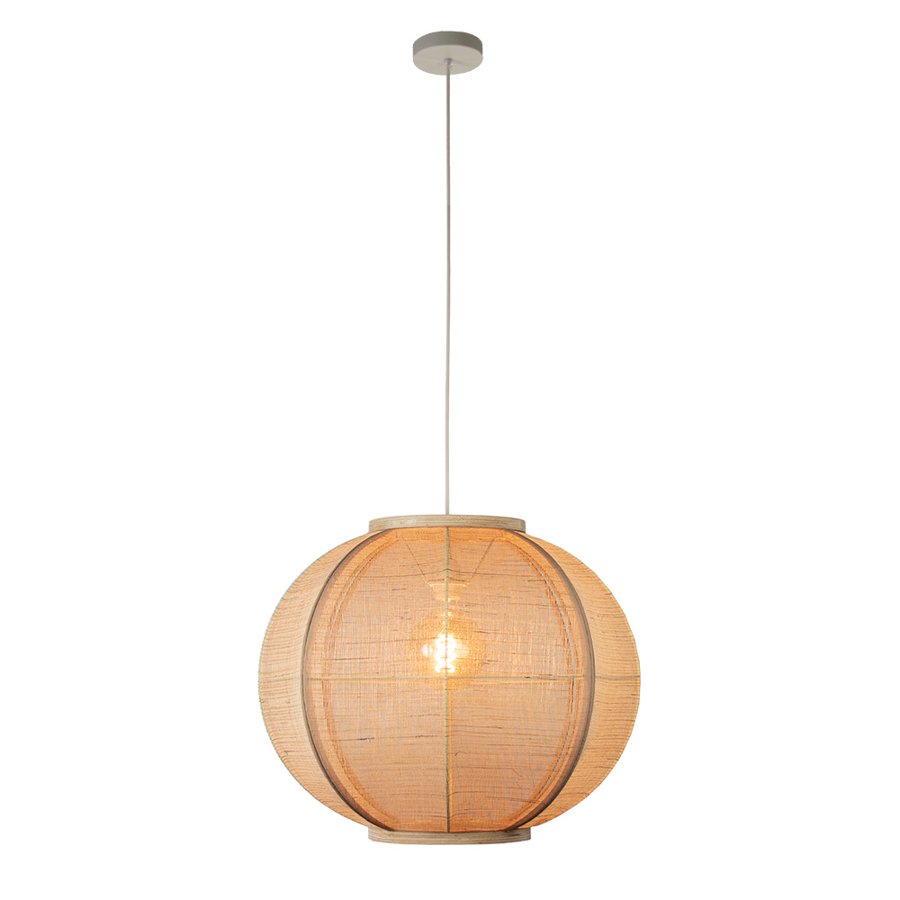 Perfect voor een beachy of landelijke woonstijl. Deze sfeervolle hanglamp heeft een stoffen kap met een afmeting van Ø68cm in de kleur zand, die mooi wordt ondersteund door het metalen frame. De lamp hangt aan een crème kleurig stofomwonden snoer die naar wens is in te korten. Super leuk om los op te hangen of te combineren met de andere maten. De hanglamp is dimbaar middels een externe dimmer en wordt geleverd exclusief lichtbron
