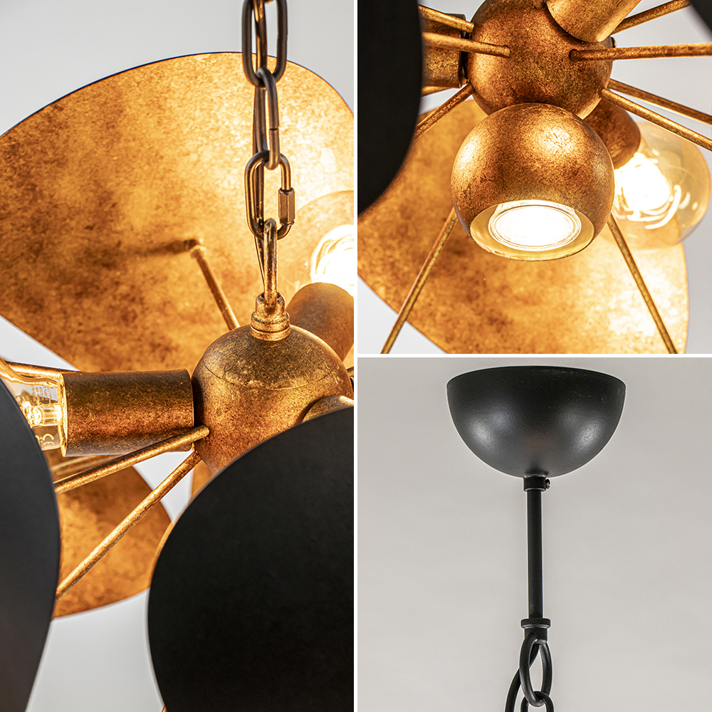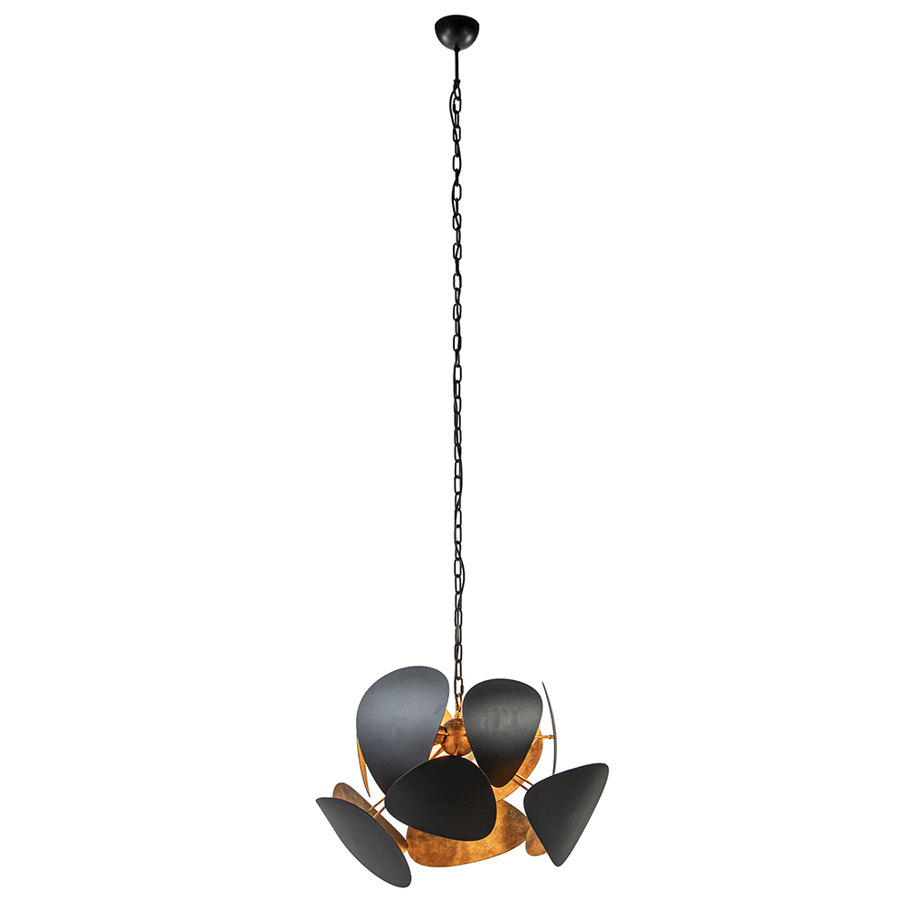 Futuristisch van design en elegant van uitvoering. Deze robuuste hanglamp is een ware eyecatcher in het interieur. De lamp is door z’n hoogte van 230 cm in diverse ruimtes toe te passen, van de eetkamer tot de hal of vide. De ronde hanglamp is volledig gemaakt van metaal en uitgevoerd in het textured black met ambachtelijk brons. Dit geeft de lamp een stoere robuuste uitstraling die mooi matcht in een luxe, chic of industrieel interieur. De hanglamp is in hoogte te verstellen door er schakels tussenuit te halen. De kap is van binnen voorzien van 3 E27 fittingen en een GU10 spot aan de onderzijde van de kap. Deze kunt u gemakkelijk bedienen met de drukknop op het armatuur. De robuuste hangllamp wordt geleverd zonder lichtbronnen en is dimbaar middels een externe dimmer (exclusief).