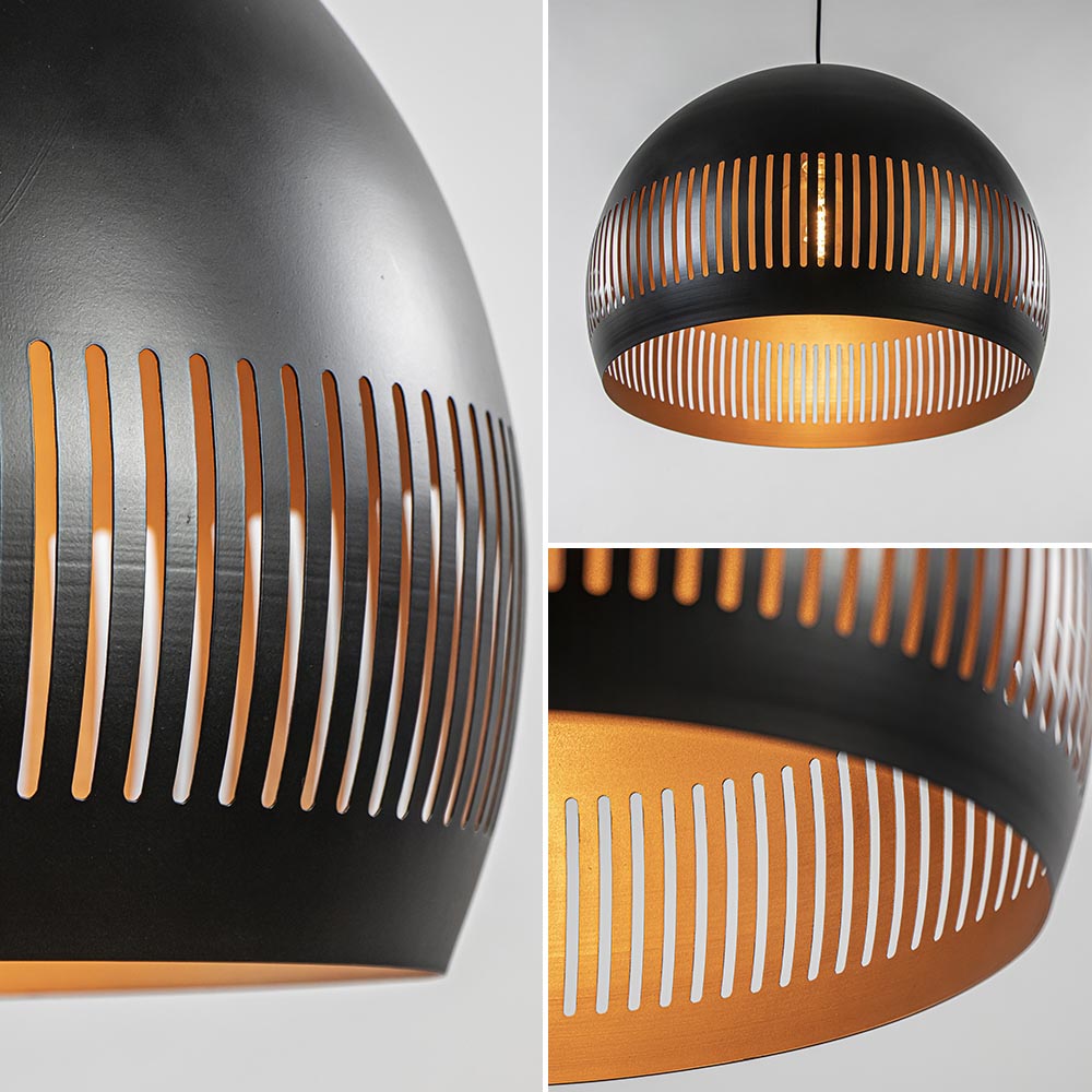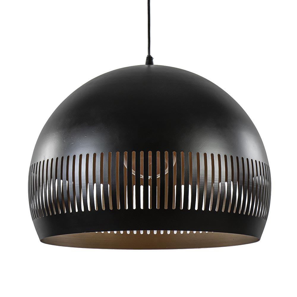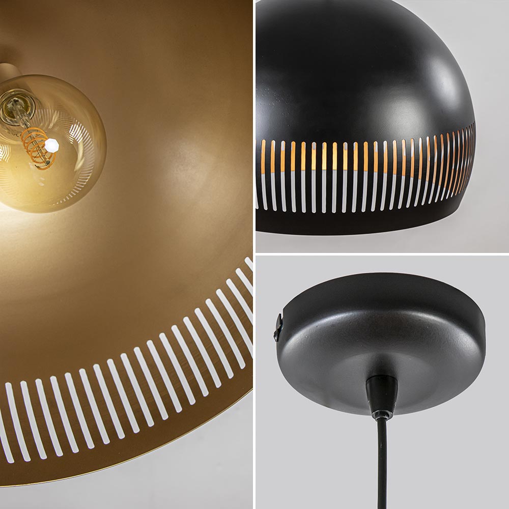 Deze koepel hanglamp maakt het interieur helemaal af. Mooi toe te passen in de woonkamer, boven een ronde eettafel of in de slaapkamer. De grote koepel heeft een doorsnede van 50 cm en is uitgevoerd in het mat zwart. De binnenzijde is voorzien van een gouden finish. Dit maakt de hanglamp prima geschikt voor diverse woonstijlen, van industrieel tot Scandinavisch. De mat zwarte koepel hangt aan een zwart snoer welke naar wens kan worden ingekort. De maximale hoogte van de lamp is 180 cm. De koepel hanglamp is dimbaar middels een externe dimmer (exclusief) en wordt geleverd exclusief lichtbron.