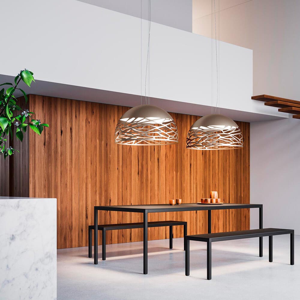 Het meest bekende model van Studio Italia Design is een hanglamp welke luistert naar de naam Kelly. Wondermooie vormgegeven lampen, met gracieuze detaillering. Deze fraaie open hanglamp is in meerdere afmetingen en kleuren leverbaar. En wel in wit, koperbrons en zwart. Het eenvoudige, maar elegant gelaserde design patroon, is vrijwel in elk interieur toe te passen. De glazen diffusor zorgt ervoor dat u niet direct in de lichtbron kan kijken en deze brengt mede zeer sfeervol licht tot stand. De hanglamp dient te worden voorzien van 4 lichtbronnen.