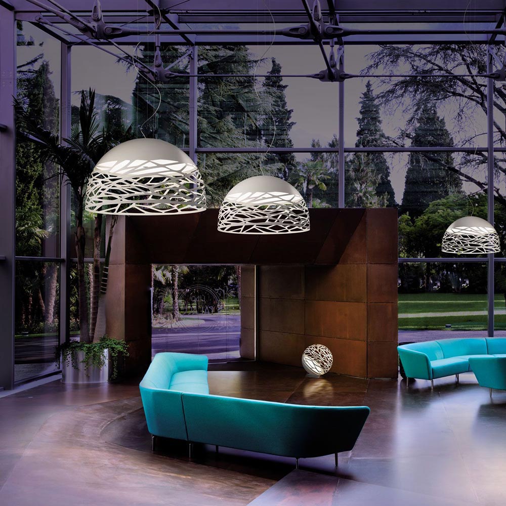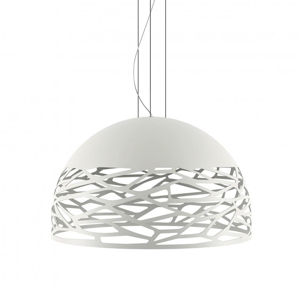 Deze prachtige koepel vormige hanglamp is het sterk staaltje Italiaans design. Staat super in een design of modern interieur. Uitgevoerd in wit metaal met een mat glazen melk witte diffuser, zo kijkt u niet direct in de lichtbron. De mooie opengewerkte rand geeft een prachtig licht/schaduw spel zowel als de lamp brand als wanneer deze uit is. Met dit grote model maakt u direct een statement.