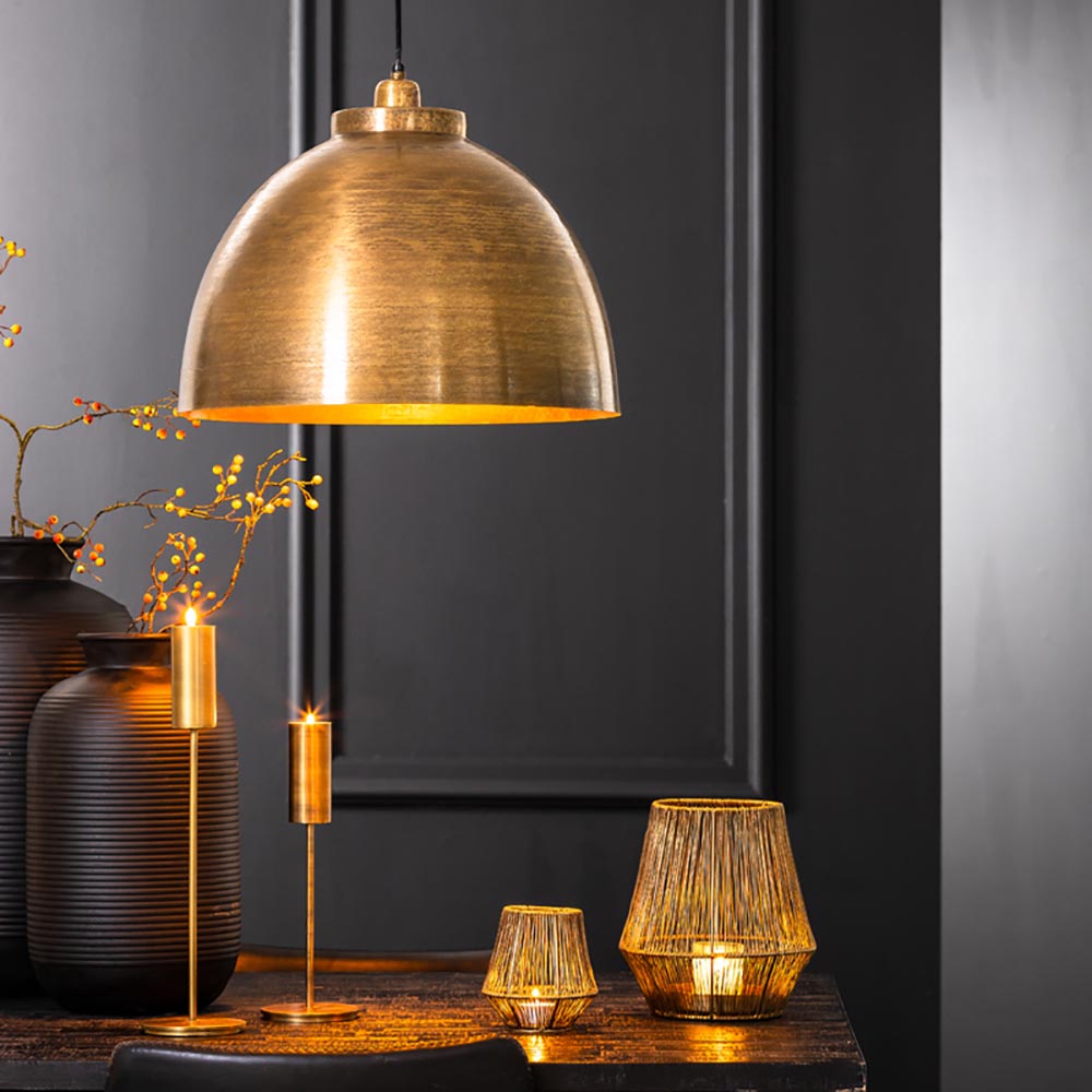 – Afmetingen: Ø45 x 148 CM – Bevestiging: Ø 10 x 3 CM – Kap: Ø 45 x 32 CM – metaal, oud brons – Exclusief lichtbron (E27) – Dimbaar (exclusief)