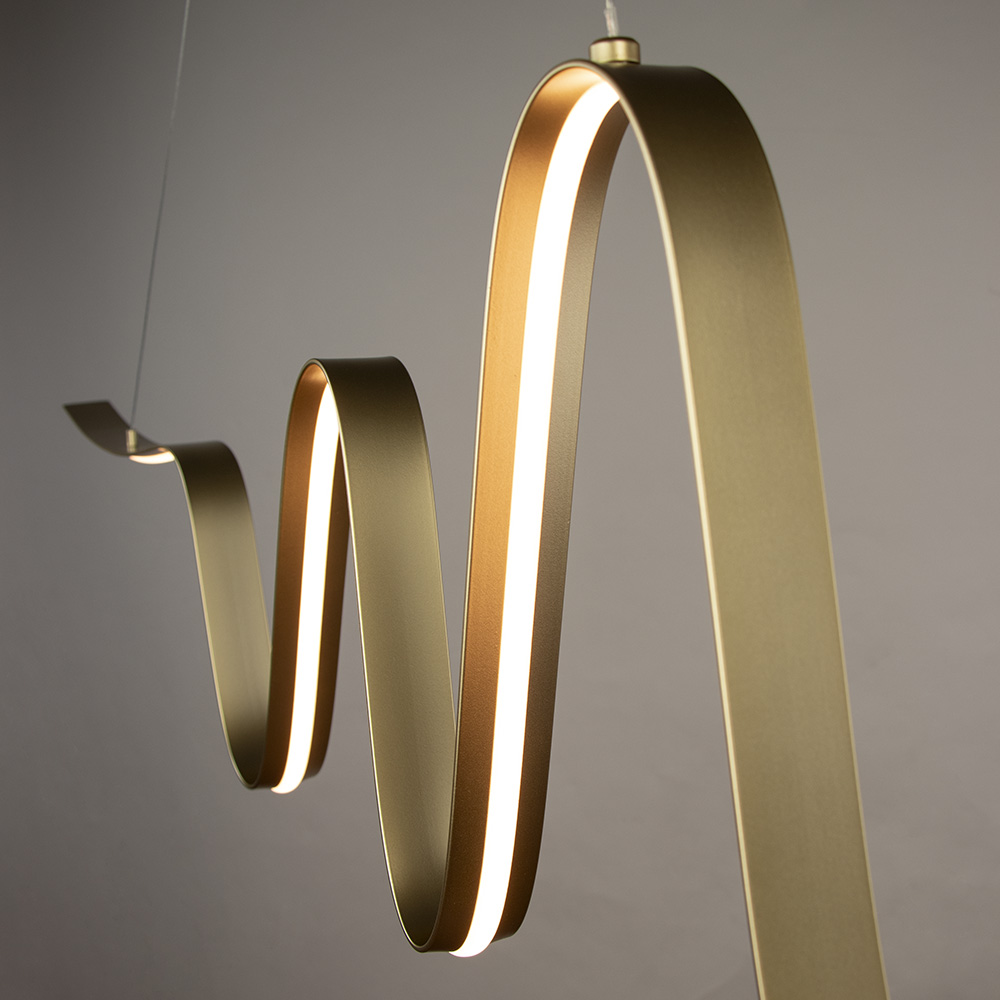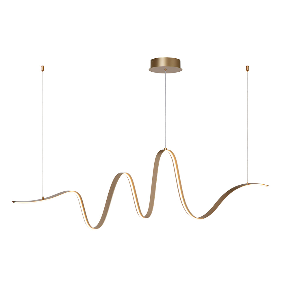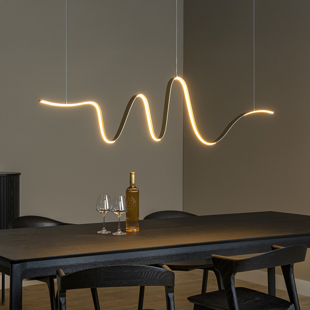 Een sierlijke lijn die kronkelt aan je plafond. Wave is een originele hanglamp met speelse, organische vormen. De hanglamp is uitgerust met een geïntegreerde dimbare LEDlamp met warm wit licht die je eenvoudig via de wandschakelaar bedient. Bij de installatie kies je helemaal zelf op welke hoogte je de hanglamp installeert. Uitgevoerd in een gouden kleur brengt hanglamp Wave op haar unieke manier het ideale licht mee boven je eettafel, als pronkstuk in de hal of als sfeermaker in de woonkamer.