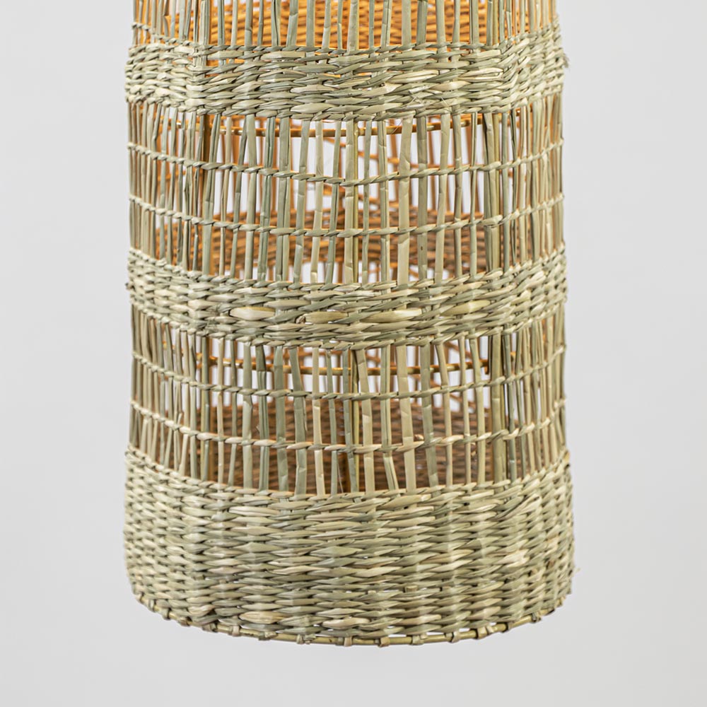 – hoogte: 160 cm – kap: Ø20×52 cm – bevestiging: Ø9,5×2,5 cm – metaal, mat zwart – zeegras, naturel – in hoogte verstelbaar – exclusief lichtbron (E27) – dimbaar (exclusief)