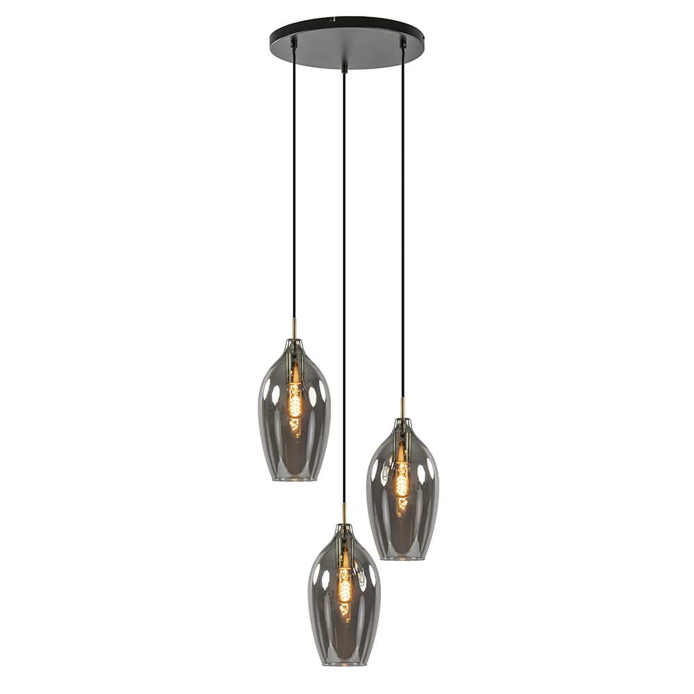 – afm: Ø45×140 cm – kappen: Ø16×32 cm – bevestiging: Ø35×2,5 cm – smoke glas – metaal, antiek brons/zwart – in hoogte verstelbaar – exclusief lichtbron (3x E27)