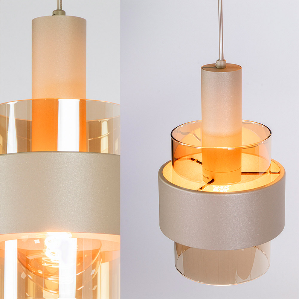 Specificaties: • Serie: Marrone • Kleur: Zand • Afmetingen: H 30 × Ø 18 cm • Plafondbevestiging: H 2,5 × Ø 10 cm • Snoerlengte: 160 cm • Materiaal: Metaal / glas • Lichtbron: 1 × E27 (niet inbegrepen) • Dimbaar: Ja, via externe schakelaar en geschikte lichtbron (niet inbegrepen)