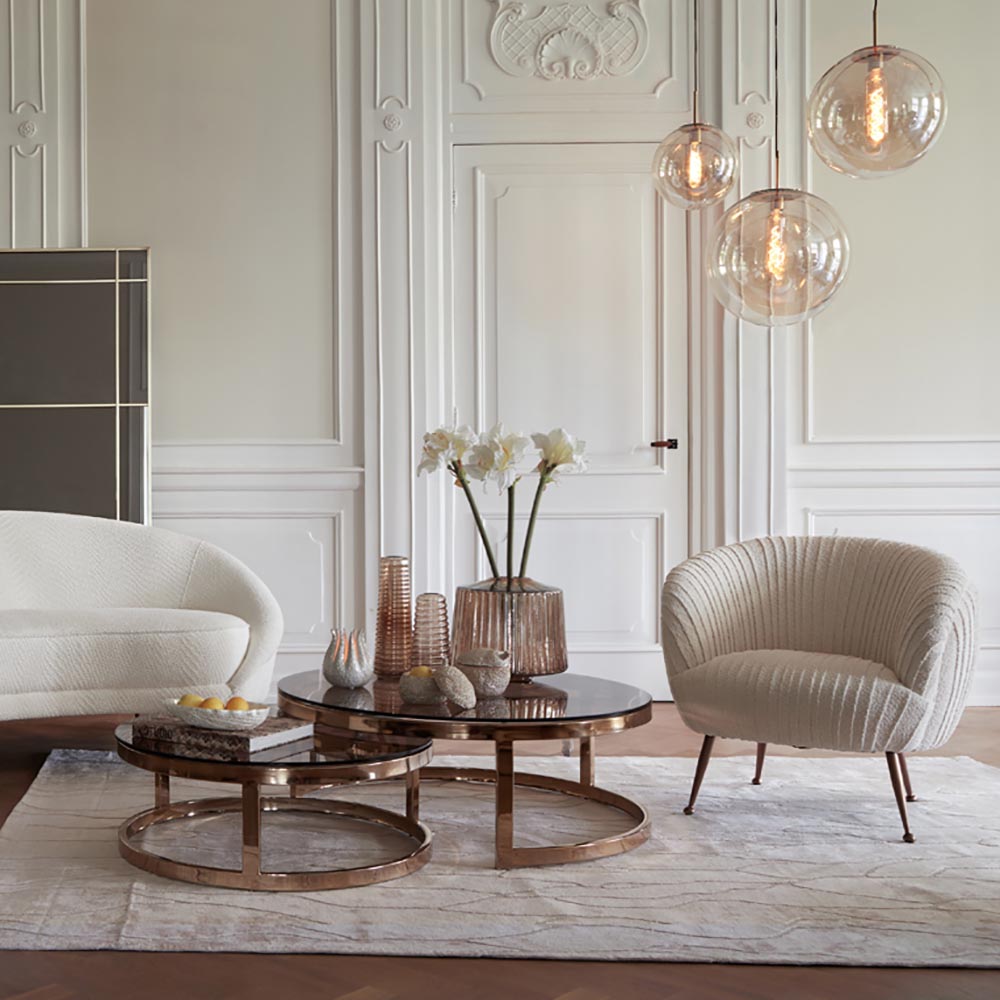 Homepagina / Lampen / Hanglampen / Hanglamp Medina satin gold/amber glas 30cm