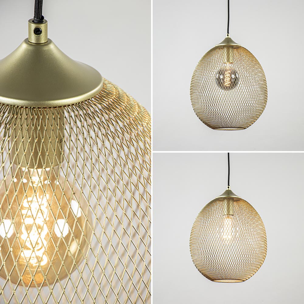 Deze sfeervolle hanglamp past helemaal binnen de huidige trends. De Moroc hanglamp is volledig van goudkleurig metaal. Het goud is licht van kleur wat de hanglamp een zacht randje geeft. De ovale vorm geeft de hanglamp zijn unieke look. Doordat de kap volledig van staaldraad gemaakt is blijft de hanglamp open en luchtig. Hierdoor is deze hanglamp perfect te combineren met één van onze mooie lichtbronnen. De hanglamp is gemakkelijk in hoogte te verstellen. Let op, de hanglamp wordt geleverd zonder lichtbron (E27).