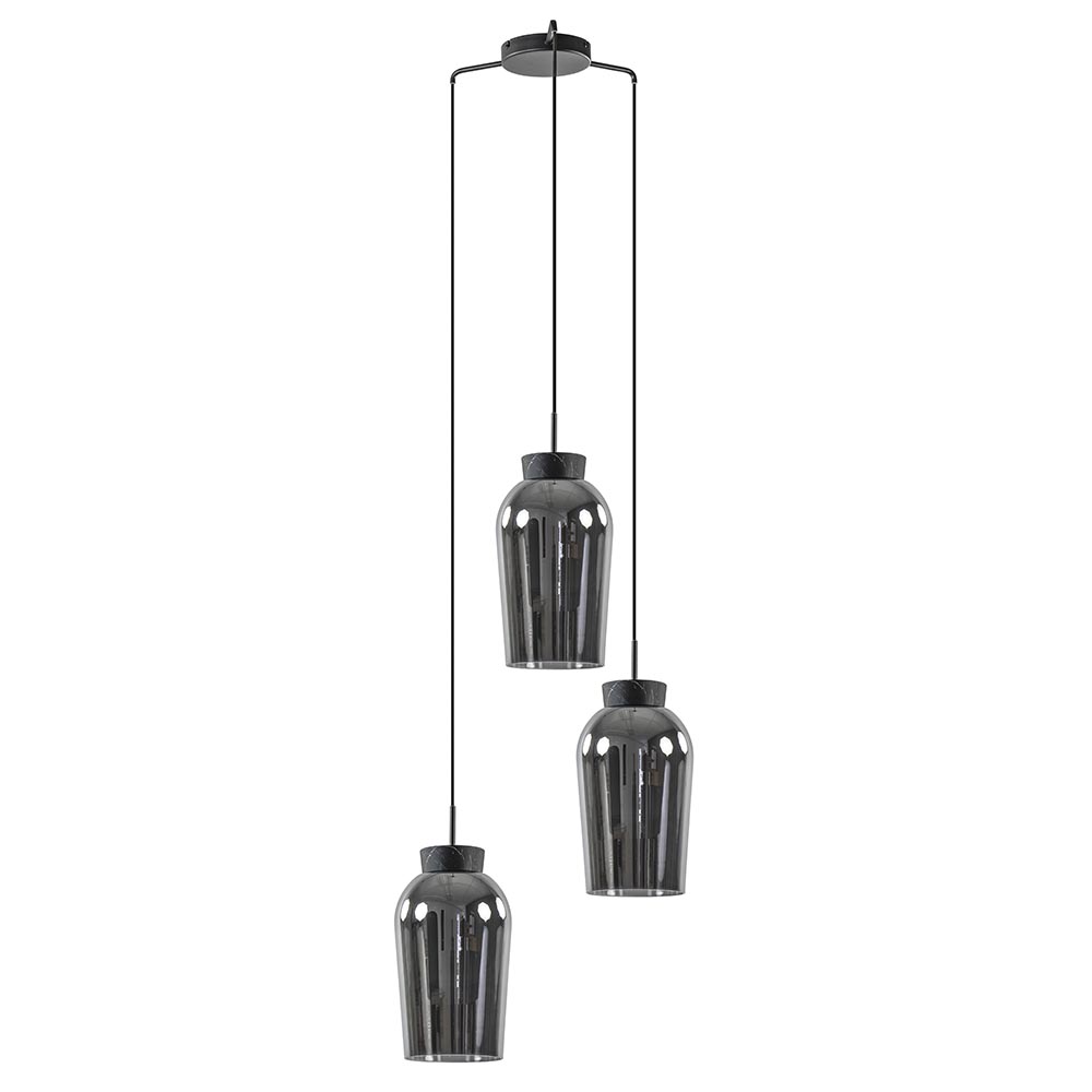 Een moderne hanglamp met een luxe uitstraling. Deze 3-lichts hanglamp heeft 3 sierlijke smoke glazen kappen. Ieder smoke glas heeft een wit binnen glas wat de hanglamp een mooi effect geeft als de verlichting aan staat. De combinatie tussen het smoke glas en het witte binnen glas geeft de hanglamp een sierlijke uitstraling. De fittingen van de hanglamp hebben een zwart marmer effect. De hanglamp is gemakkelijk in hoogte te verstellen en is dimbaar middels een externe dimmer (exclusief).
