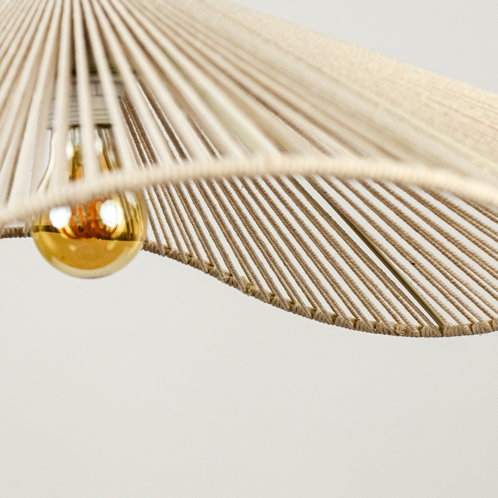 Waarom kiezen voor deze lamp? • Uniek design: Grote golvende kap met speels en luchtig effect. • Natuurlijke uitstraling: Brengt warmte en rust in huis. • Perfect formaat: Ideaal voor grotere ruimtes of boven een royale eettafel.